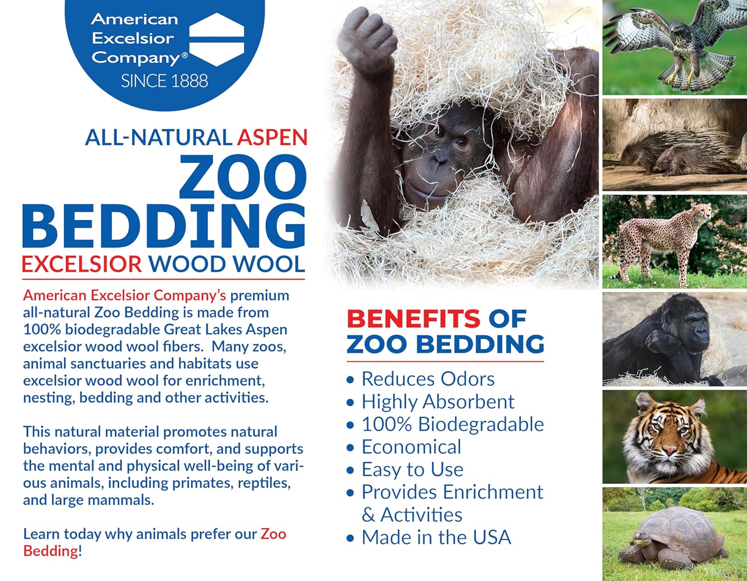 American Excelsior Zoo Bedding All-Natural Aspen - 10 lb - All-Natural Aspen Wood Wool for Animal Enrichment and Bedding