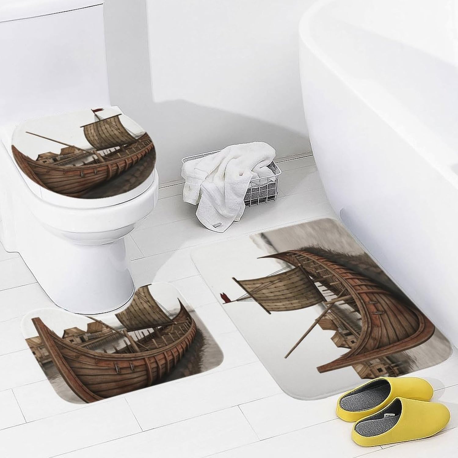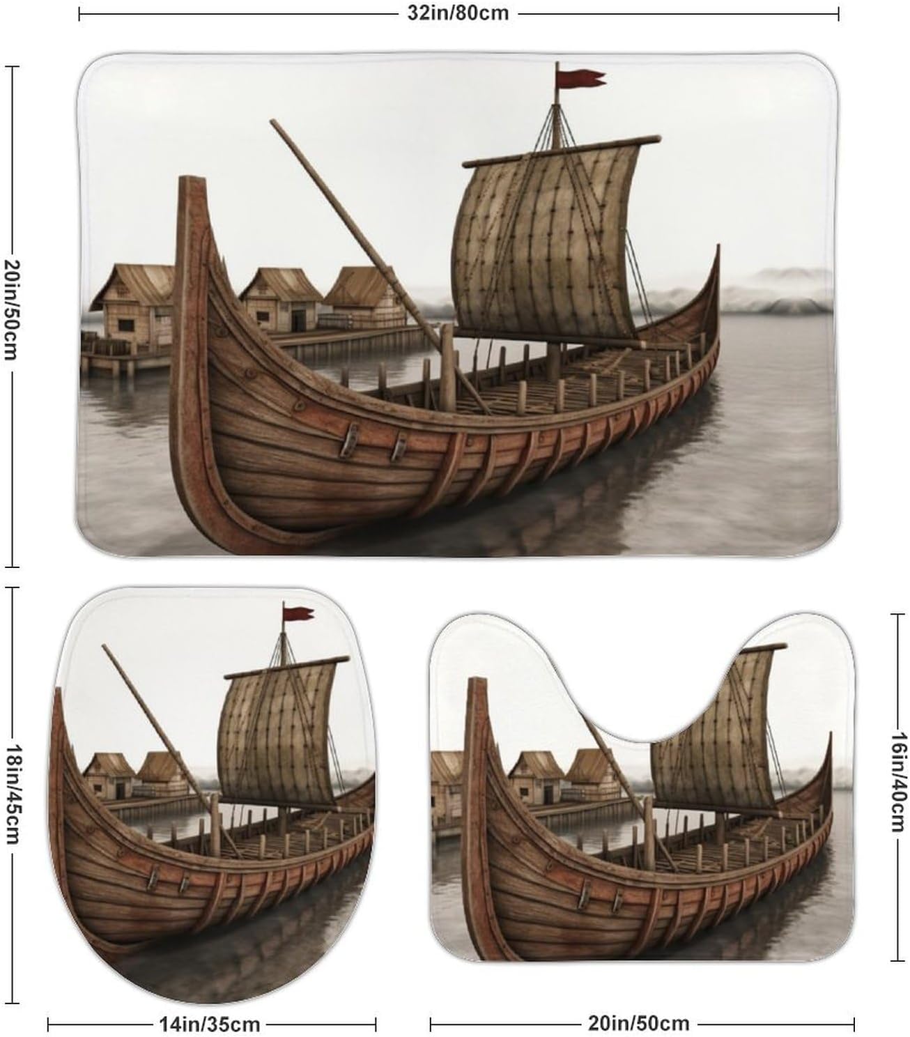 The Old Viking Boat printed bathroom mat set provides a soft and comfortable surface for your feet. Whether you are taking a shower, getting ready for the day, or resting at night, this rug provides you with a comfortable place to step on The Soft bathroom mat contour mats and cover cover Suitable for home bathrooms, guest rooms, bedrooms, living rooms and other places, Washable, not machine washable