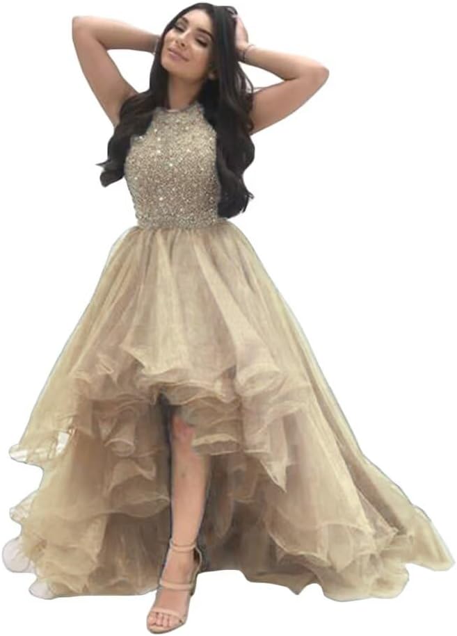 Welcome to AsullaASULLA High-Low Prom Homecoming Dresses For Juniors Halter Masquerade Cocktail Dress Shiny Tiers Formal Evening Party Gowns Tiers Lace Appliques Sweet 15 16 Dress FeatureFabric:OrganzaNeckline:Halter Closure:Lace Up Corset BackOccasions:The dress perfect for prom,homecoming,quinceanera,ball,cocktail,birthday,sweet 15 16,festivals,graduation,wedding,party,bridesmaids,formal,semi-formal,banquet,pageant,masquerade,gala,church,office and other special occasions. Size:When you are shopping for a dress,knowing how to choose a size is very important. 1.Please measure the data about full bust/waist/hips,then compare with our own size chart. 2.If these three data do not belong to any standard size, please choose a larger size.When the dress doesn't fit perfectly,tailor can easily change sizes to fit.All of our dresses have extra 3CM fabric in the seams.3.The dress is mermaid style,has zippers,long sleeves,we suggest you measure the data,no one's figure is standard size. If you are not sure of the size,customized the dress is a good idea.Please measure the data below,all data are Inches/CM Full Bust:____ Waist:____ Hips:____Shoulder to knee:____ Height(barefoot):____ Shoe heel:____ Event Date:____ Notes:1.After you open the parcel, please hang the item out immediately,steam ironing after use effect is better.2.The color of the evening dress may be a little different from the pictures on website caused by factors like monitor brightness and light intensity. 3.Please do not bleach,do not wring,hand wash or dry clean. Thank you for trust