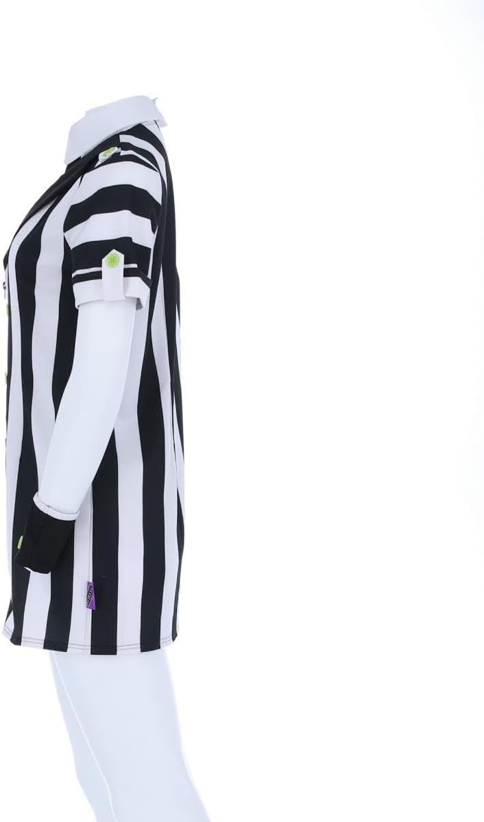 This Beetlejuice Women's Shirt Dress Costume is ideal for a fashionable Halloween night out. Flaunt your undead style in this statement shirt dress that transforms Beetlejuice from eerie to alluring.