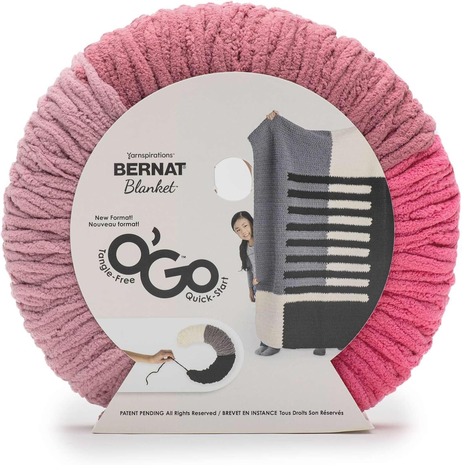Bernat Blanket O’Go is the same super bulky chenille-style Bernat Blanket yarn you know and love, now in the new innovative O’Go format. Unlike any other format, the new O’Go style creates a quick start and smooth stitching experience. With no more yarn tangles, you can pick up your yarn and O’Go straight into stitching your next blanket, afghan, or pillow.
