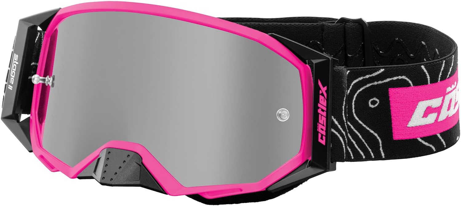Eyeglass Friendly! Improved field of vision. Wider strap for improved hold. Flexible polyurethane frame. Custom oversized foam to help cover exposed skin areas around goggle. Triple stage foam utilizing ultra-wick quick dry fleece for improved moisture transfer. Silicone beaded strap maintains proper strap placement on helmet. Removable nose guard. Microfiber carry bag included. Optional lens colors sold separately. Complete with mirror lens or clear lens (color as shown).