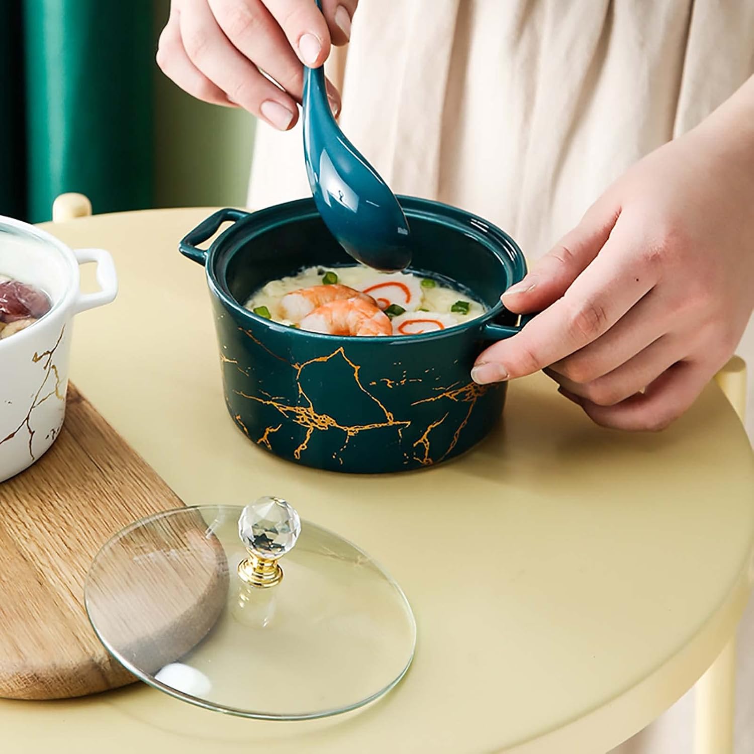 Product Description 1. Light heat heating, designed the most durable chafer dish which is not only long-lasting but will also keep your food warm for quite some time. 2. With lid button and handle design, easy to handle Ceramic material, suitable for a variety of home styles, creating a romantic gourmet life for you. Specification: Name: Round ceramics dining stove Material: Metal Weight: 0.5kg Specification: 0.4L Products include: 1*ceramics Chafing Dish Tips: Due to the influence of light, screen and environment, the color of the project may be slightly different from the picture, the actual product shall prevail. Due to different measurement methods, the error is generally 1-2cm, and the error range is not within the quality range.