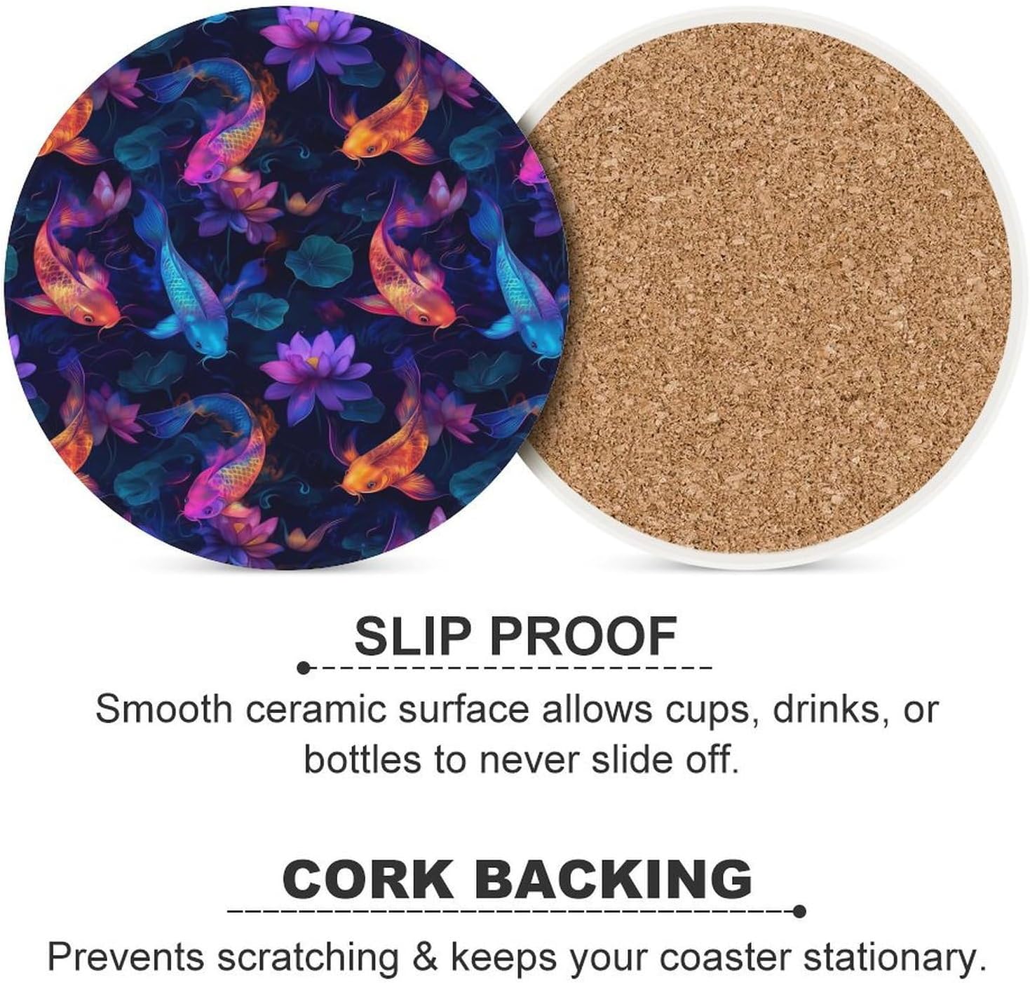 Ceramic Coaster with Cork Base Funny Absorbent Coasters Set Suitable for Kinds of Cups, the absorbent ceramic coasters comes with vibrant color and beautiful design, goes with everything
