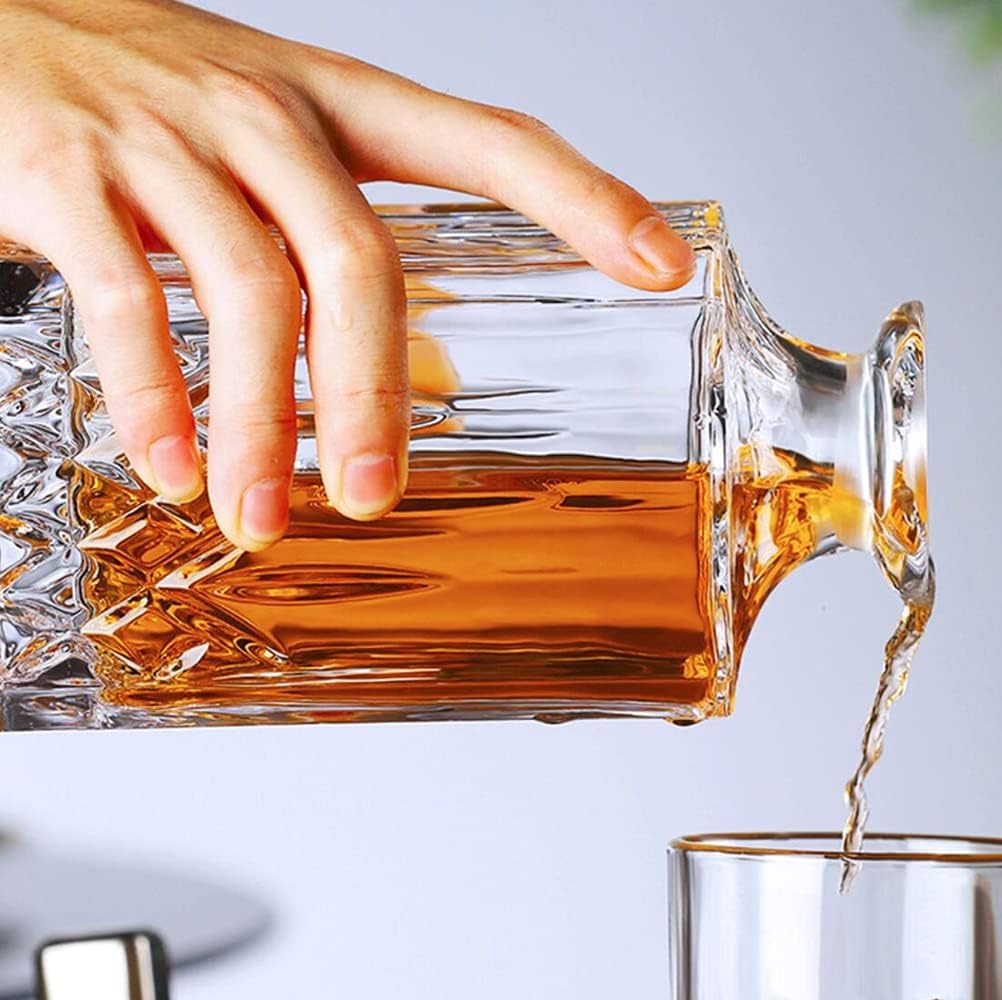 Very classic style, suitable for all gift-giving occasions. Imagine that when your lover or colleague friend boss receives this surprise whiskey bottle, they will be very happy. This stunning scotch decanter is very suitable for a home bar tool. When you want to indulge or relax, this glass decanter will be a good choice. Product features: Crystal glass stopper Ornate, classic pattern Handblown lead-free glass Thick base adds stability and shatter resistance Rolled rim ensures smooth pouring. Dishwasher safe, handwash recommended