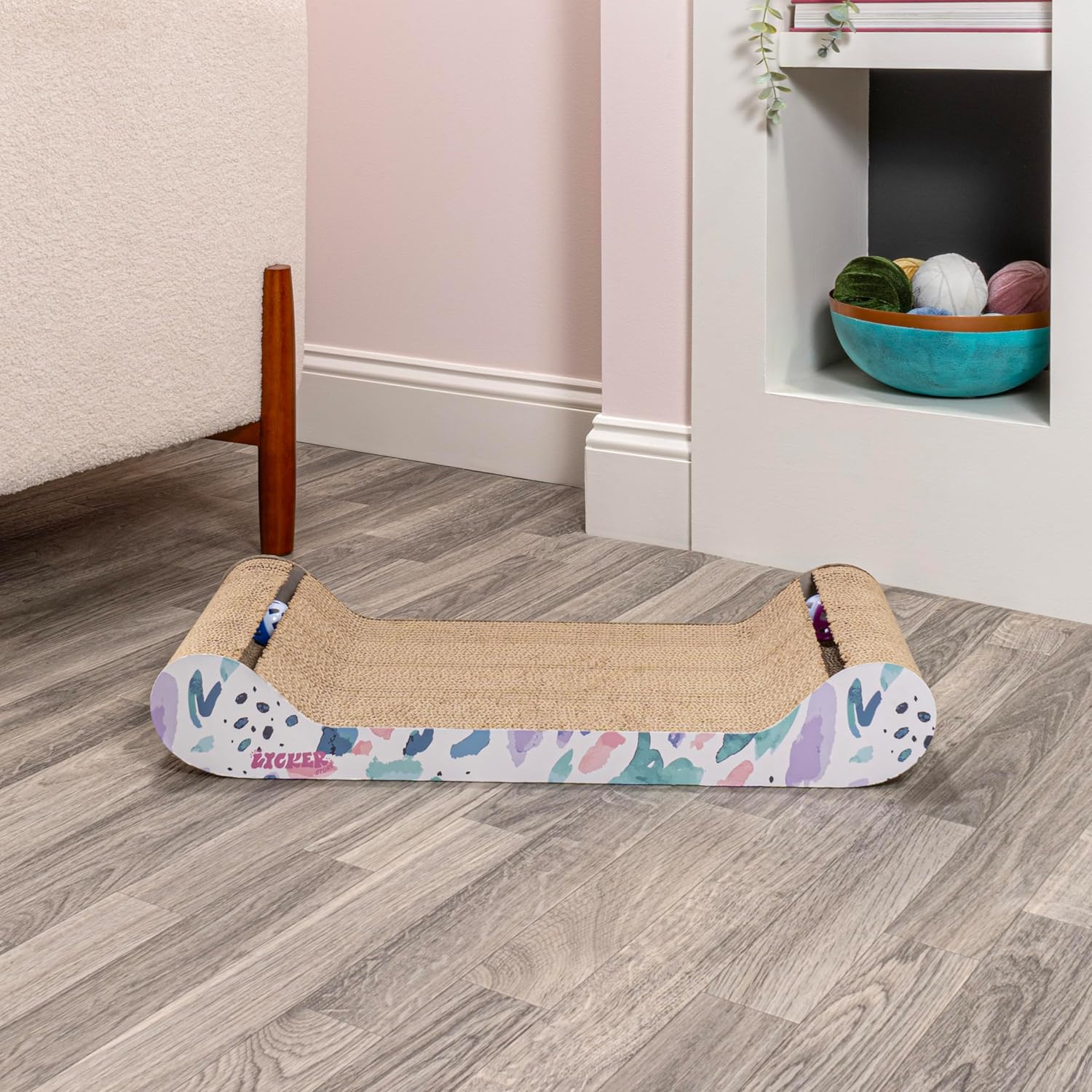 Cats love our lounge scratchers for stretching, scratching or just hanging out. With a curved headrest at each end, the rectangular design appeals to cats who don't like a soft bed. Bell toys are built in on the sides for extra entertainment.