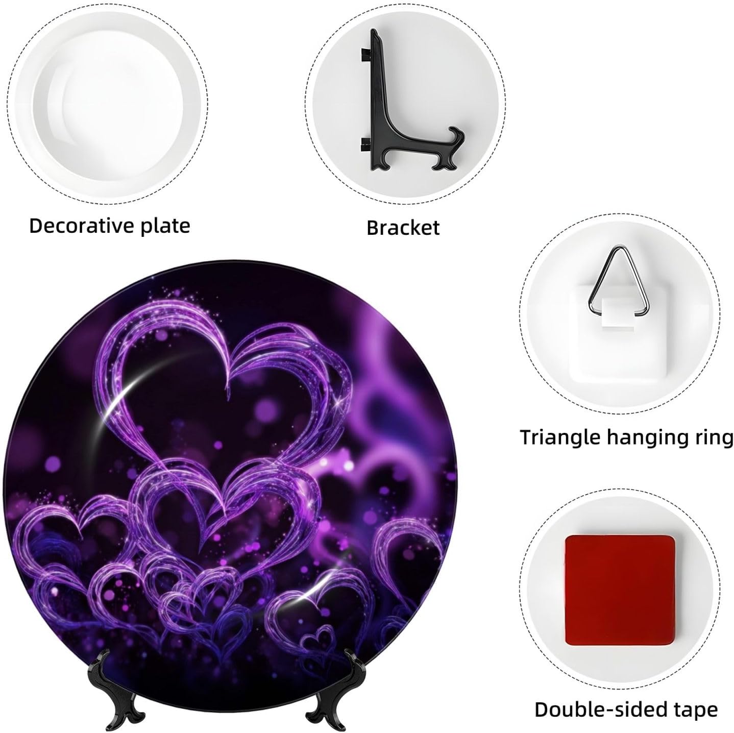 gokays decorative platedo you feel that your table is monotonous? Then use our decorative plate to add a little fun to the monotony of life.featuressize - 6 inch diameter;7 inch diameter;8 inch diameter;10 inch diametermaterial - ceramic design - Fashional Purple Hearts package - 1 x ceramic decorative plate, 1 x stand, 1 x pothookwhy choose gokays decorative plates?advantageas manufacturers we follow current trends and bring you the latest home fashion. Salad plates ideal for placement at home or in the office. Traditional porcelain making technology, fine workmanship. Ceramic dinner plates is a good gift for family and friends.convenient to useour dinner plates rack for display has 2 ways to use, you can just place the bracket base on a flat surface first, and then put the plate on it, also you can stick the provided pothook at the back of the plate, and then stick the plate on the wall, you can choose the suitable installation method according to the actual situation.occasionour ceramic ornaments salad plates is a perfect decorative and collection for any niche, table, or mantle at your home. Perfect for your office, home, living room, dining room, playroom, kitchen, cafe, study, studio, club, bar, and others.in a surprise for your family and friends!porcelain dessert plates is a perfect gift for any person in your life. You can give it directly to your lover as mother's day gift/father's day gift/birthday gift/christmas gift/valentines day gift/anniversary gift/wedding gift/housewarming gift/new home gift.start with our funny decorative plate, refresh your rooms!