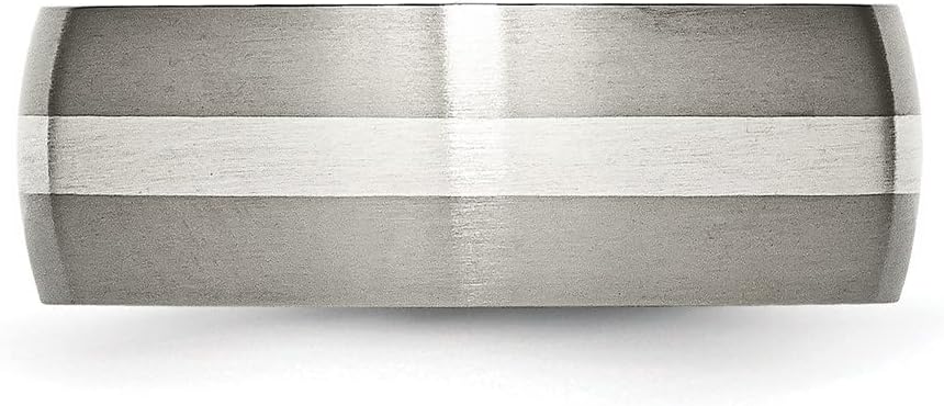 Titanium and Sterling Silver Inlay 8mm Brushed Wedding Band for WomenElegantly Crafted in Highest Quality Titanium and 925 Sterling Silver for Luxurious Shine and Feel