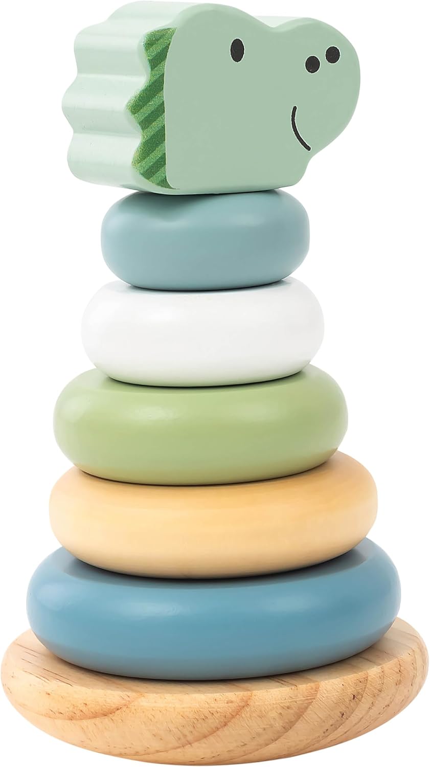 The Stapelturm DINO Rexi brings activity to the kids' room, fostering key developmental stages through playful interaction. Children aged 12 months and above sort colorful elements, grasp and stack them in various sequences, thereby engaging motor skills, creativity, and logical thinking.