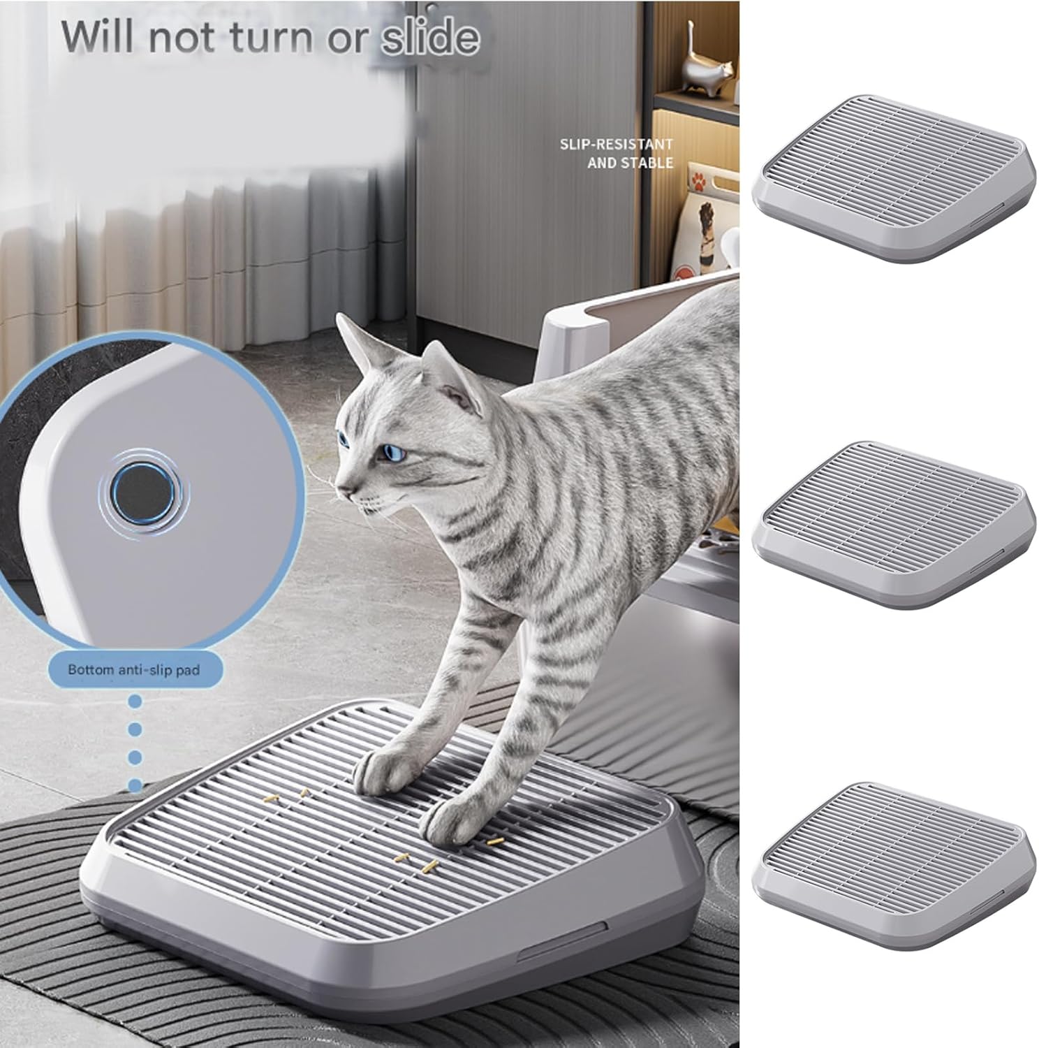 Double Layer Litter Step for Sand Containment Anti-SplashFeatures:This double layer filter litter tray ramps effectively traps over 90% of spilled litter, messes and maintaining a home with its innovative design.Crafted from friendly with a smoothly surfaces and nonslip bottom, ensures easy through simple rinsing or wiping, while providing stable placement on various floor type.Ideal for cats owners, especially those with active kittens or busy households, as it reduces frequency and simplifies maintenances for both novice and experienced pet enthusiasts.Perfect for use in homes and apartments, it prevents liquid splashes and protects floors like wood or tiles from stain, ensuring a hygienic and comfortable space for your pet companion.This litter mat easily fits most litter boxes, offering easy installation without tool for pet care Specifications Component: Product Size: Approx. 35x30cm/13.77x11.8inchPackage Includes:1PC Litter Tray rampsNote:Please allow 1-2cm error due to manual measurement.Due to the differences between different monitors, the picture may not reflect the actual color the item.