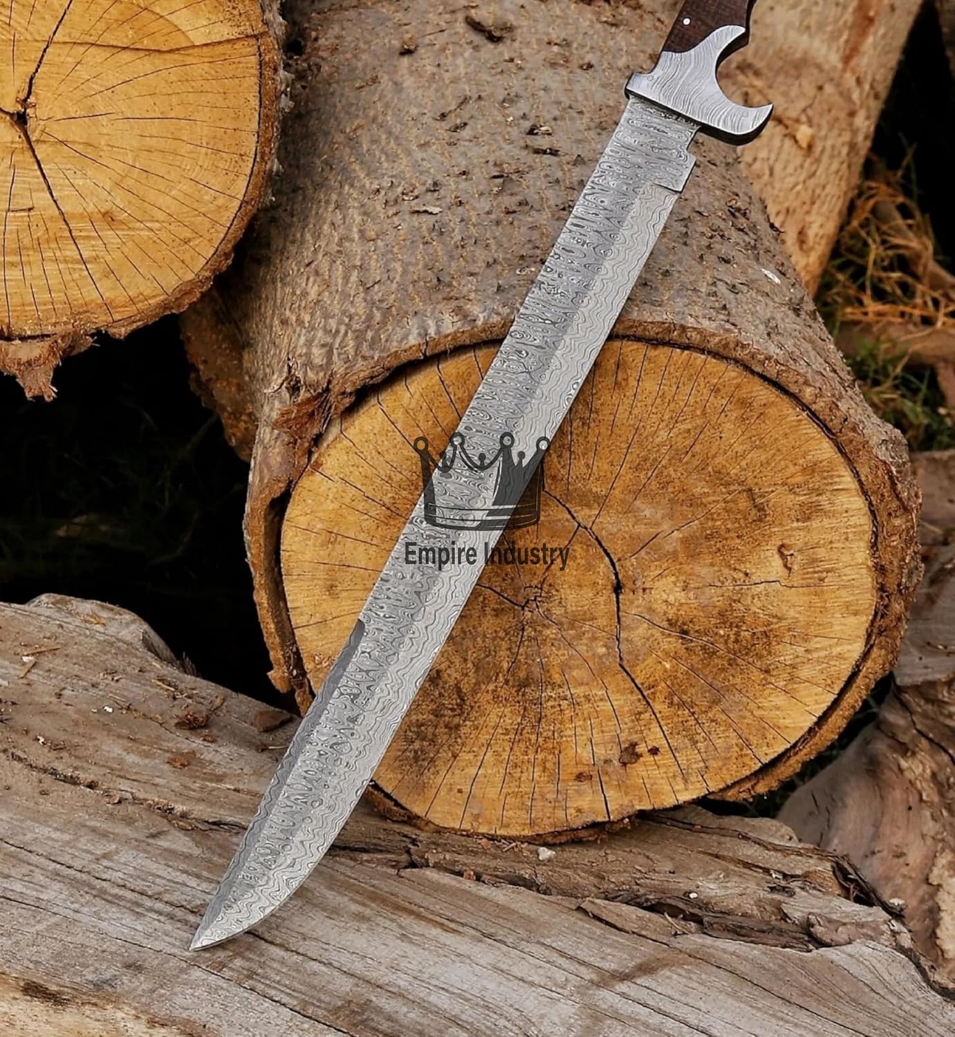 We Also Accept Custom OR Bulk Quantity Orders. Specifications Handmade Damascus Steel Double Edge Medieval Sword With Leather Sheath By Empire Industry. HANDLE MATERIAL AWESOME Micarta. Overall Length: 30.00 Inches Blade Length: 24.00 Inches Handle Length: 6.00 Inches Blade Thickness: 3 - 4 mm Damascus Steel Blade Having Sharp Edges. Hardness Of The Blade Is 57-60 HRC. SHEATH Well Hand Stitched Cow Hide Leather Sheath QUALITYSTANDARDS Our Damascus blades are made from high quality non-stainless steels which rival or exceed any Damascus blade made from the 10 series with 15N20.Our Damascus combination has taken years to perfect and has been tested under a variety of application which will offer professional performance in categories of toughness, strength (lateral stress) and edge honing and holding ability. And No two blades are exactly same because of its unique pattern. In a 5 spot Rockwell test our blades will average near or close to 58 which offers a perfect balances between its toughness and strength. Our blades due to carbon content need to be regularly treated with wax and/or 3 in 1 oil to maintain its superior quality. Questions If you have any question feel free to send us message we aim to answer all questions within 12 hours. Feedback If you are not satisfied with our service please contact us before leaving any negative or natural feedback. We will resolve all issues as quickly as possible. Disclaimer We are not responsible for any injuries associated with the use of our tools. Our products are intended for legal use only by responsible buyers. Therefore, we will not sell our products to anyone under the age of 18.