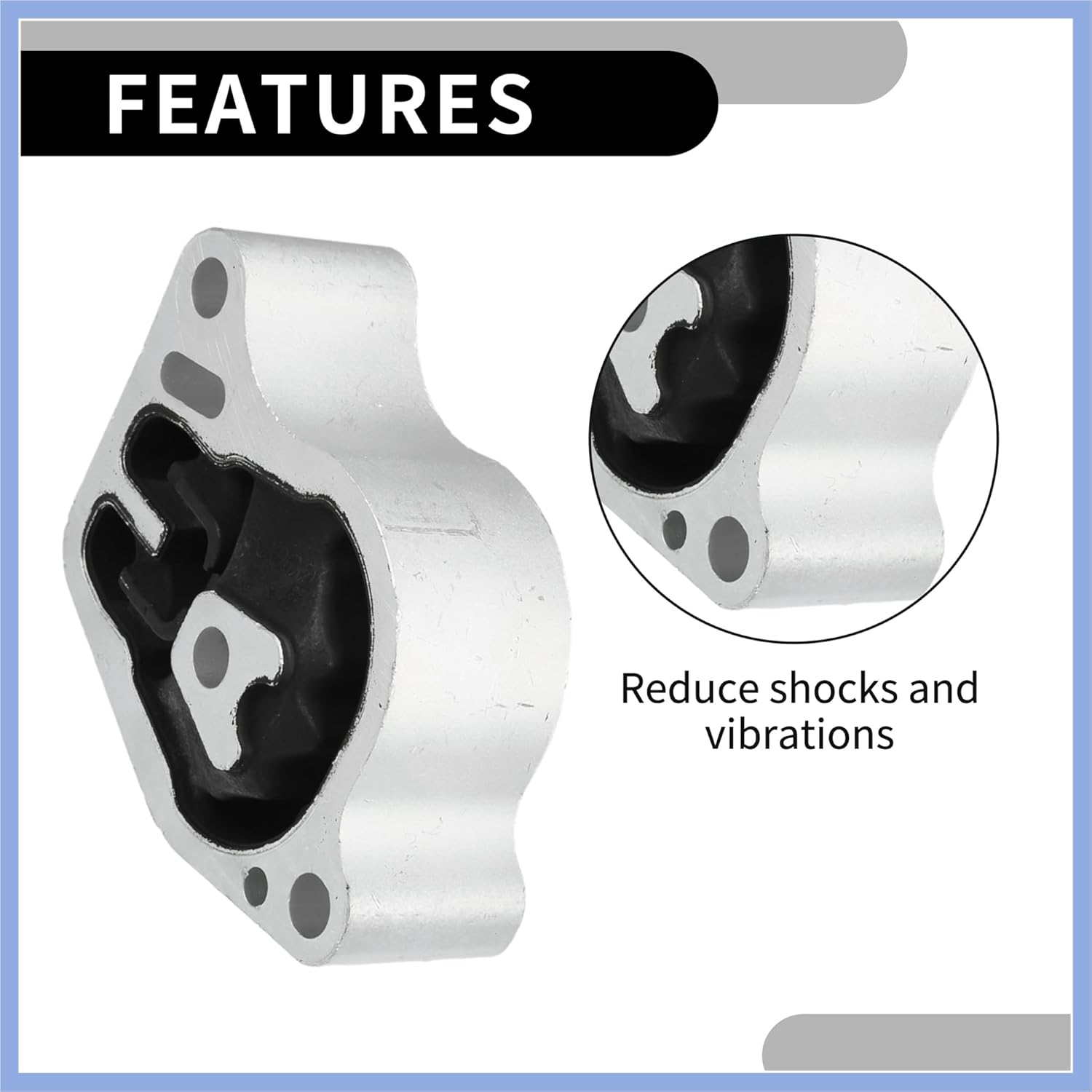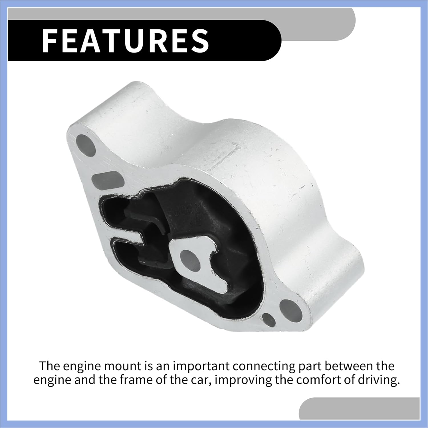 Function:The engine motor mount is effectively reduce the vibration and buffering of the engine during operation.Engine Motor Mount made of metal and rubber, The rubber composition on the engine mount can effectively eliminate these vibrations and prevent them from being transmitted into the car, thus improving the comfort of driving.Product Dimension:Material: IronColor: Black, Silver TonePositions: RearSize: 12.5x11cm / 4.92"x4.33"(L*W)Compatibility:OE Number:11360JA000for Nissan Altima 2.5L 2007-2013Please Attention:This is non-OEM product, accessory ONLY!Please confirm the model, displacement and year of your car before purchasing.Ship Content:1 Pc - Engine Motor Mount