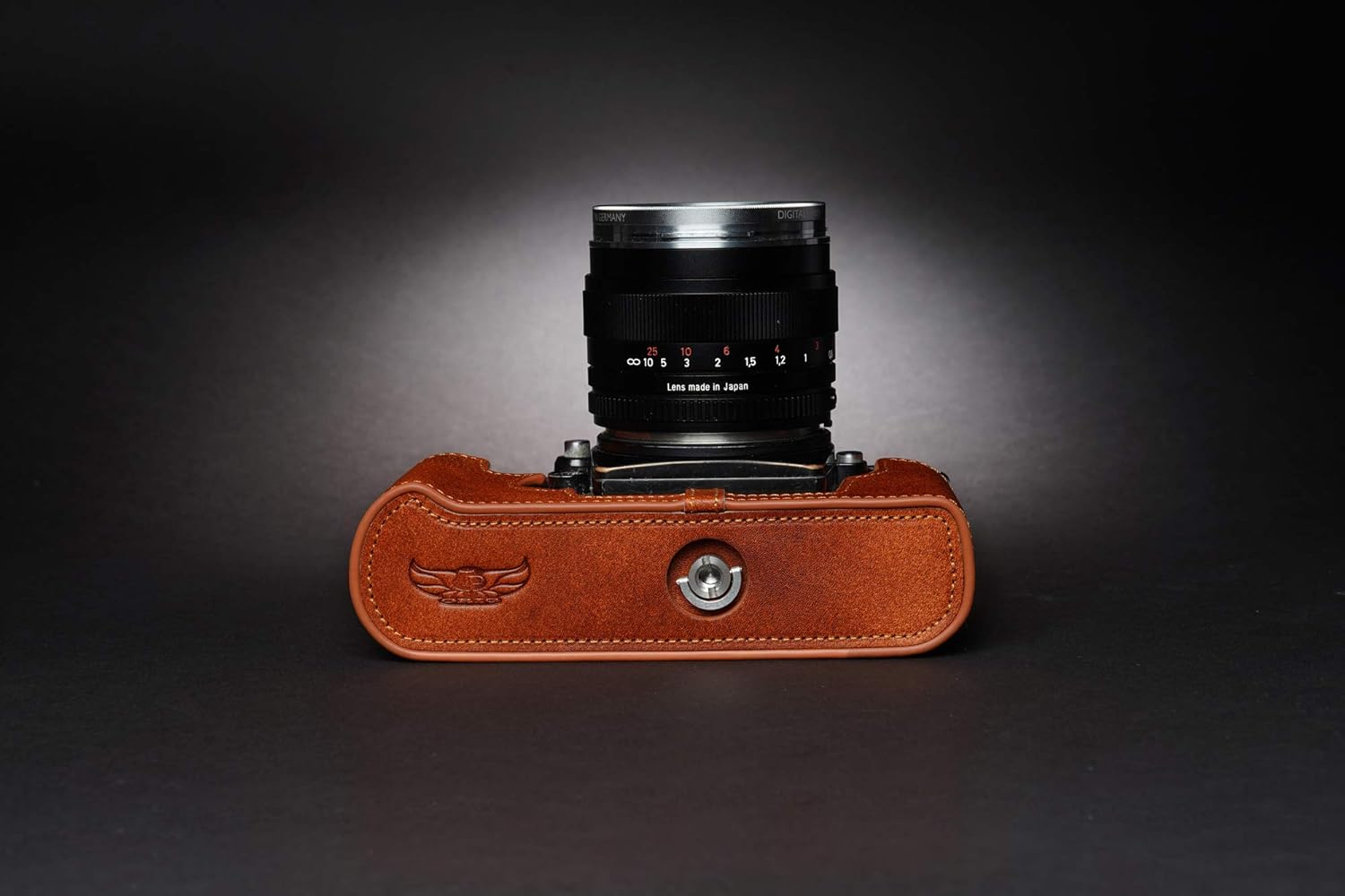 This camera is made by real top layer oil leather, the design is simple and vintage, use Metal sizing techniques make it very fit with the camera body. Inside lining use high lever velvet to protect camera body for scratch and coloration. Under base screw is made by copper and it can easy take off by coin. You don't need to take off the half case when you use tripod. It has a special design for Nikon F3 Camera which makes it easy to turn over the Screen and it will totally not affect screen rotation. You don't need to take off the half case when you connect data lines. Content: 1 x camera half case, 1 x Free Genuine Real Leather Hand Strap, camera not included. Material:Genuine leather.