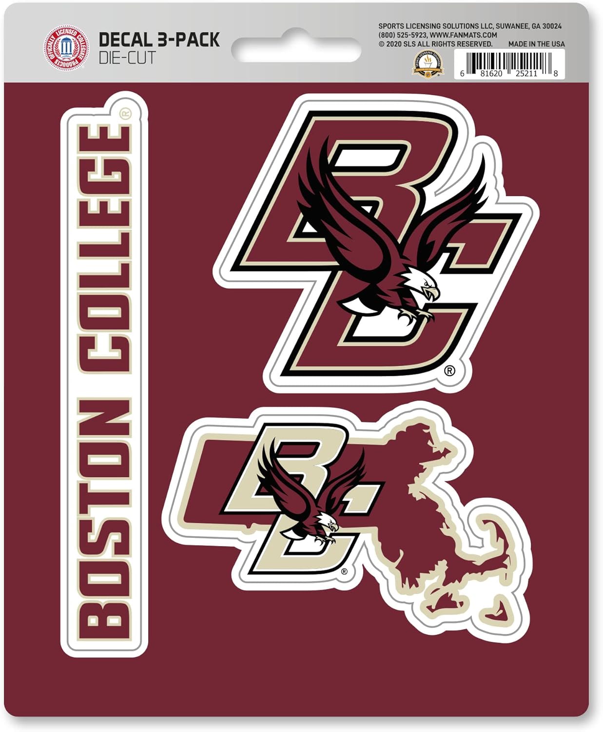 Detail your vehicle and show your team pride with this NCAA Team Decal, 3-Pack by Team ProMark. These decals measure approximately 5-inches by 7.5-inches and are constructed from die-cut, premium, vinyl material. They feature UV resistant lamination to ensure outstanding durability. Includes 3 adhesive decals that feature team colored graphics. Made in USA, perfect for gift giving!