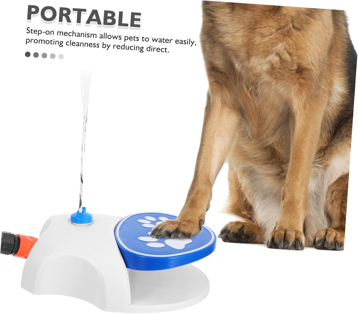Package List 1 x Pet pedal water drinker Characteristics -Color:Sky- on waterer for dogs -Travel-friendly: compact size and lightweight construction make it easy to pack and transport for any outdoor adventure garden water dispenser for puppy -Weather-resistant build: crafted to endure harsh outdoor environments, ensuring reliable performance in all conditions dog drinking dispenser -Size:27.00X21.90X8.60 cm/10.61X8.61X3.38in dog water dispenser -Material:PVC, ABS small dog water dispenser -step on activated water fountain: step-on activation minimizes waste, maintaining drinking environment for your pet outdoor dog water dispenser -portable dog water dispenser: ensures your pet has access to safety water anytime, enhancing their outdoor experience and keeping them refreshed dog water dispenser for yard -Automatic Water Supply: Simply attach the included hose to your faucet, and this outdoor dog water dispenser provides a of water for your pet water fountain Goods Informationdog drinking fountain Ideal for outdoor settings, it keeps pets refreshed while encouraging playful engagement with the dispenser.outdoor pet water sprinkler Featuring a pedal-operated mechanism, this dog water fountain offers an interactive way for pets to stay hydrated.dog drinking sprinkler The device is easy to use, requiring minimal effort from your furry friend to activate the water flow