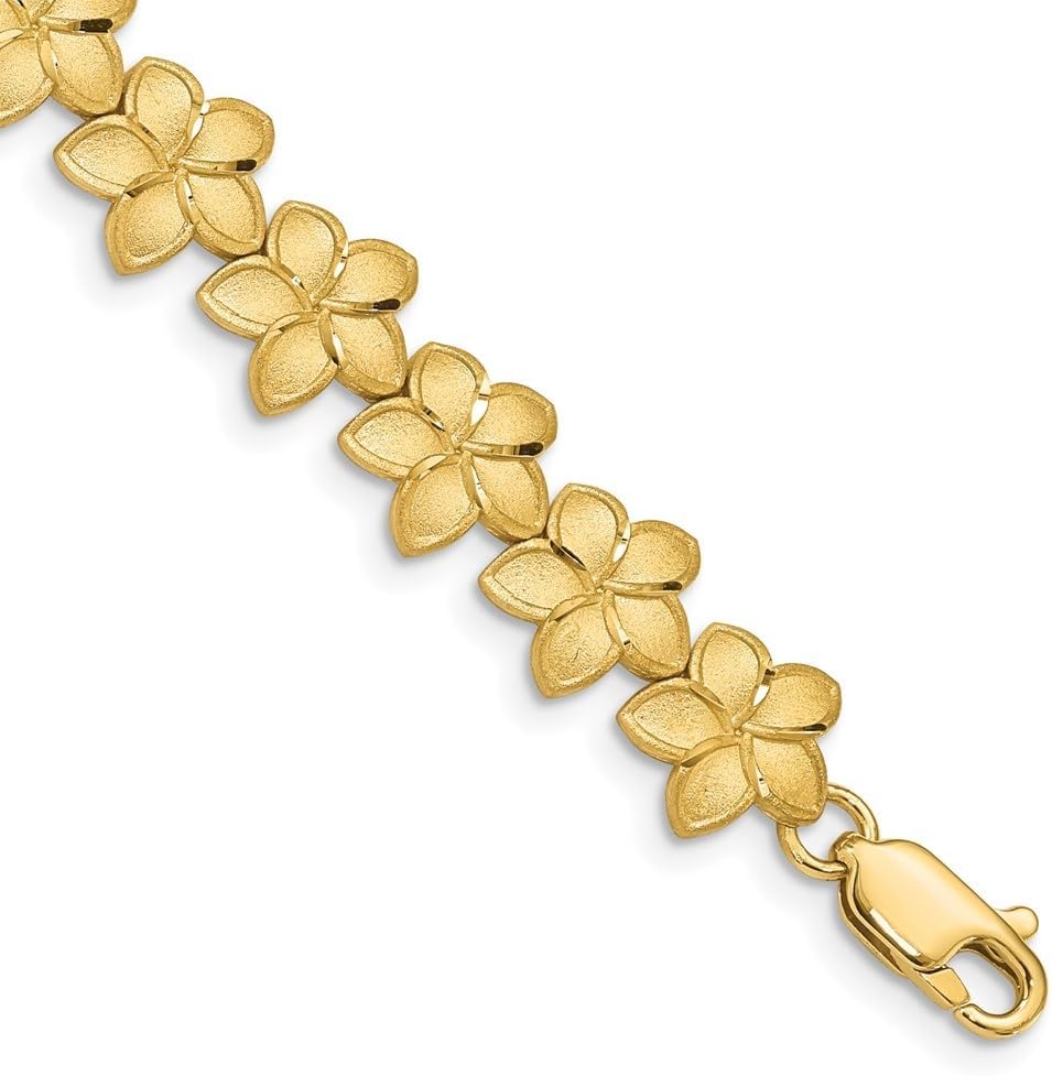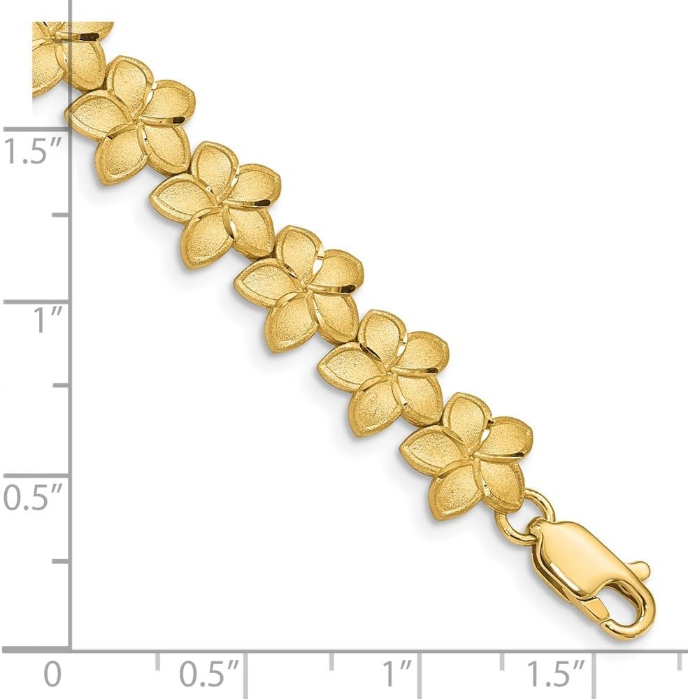 Features:Material Purity:14KFinish:Polished & BrushedLength of Item:7.25 inChain Length:7.25 inChain Type:FancyChain Width:10 mmClasp /Connector:LobsterFeature:SolidMaterial:GoldWidth of Item:10 mmSold By Unit:EachBracelet Type:Bracelets with StationsTexture:Diamond-cutProfile Type:Flat BackMaterial Color:YellowNumber of Elements:20All weights and measurements are approximate and may vary slightly from the listed information.