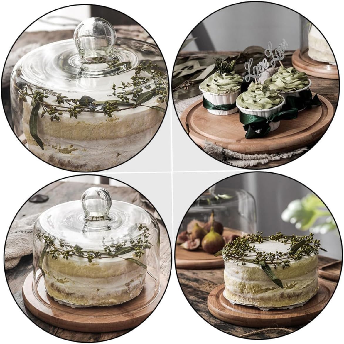 Package List 1 x glass cake cover 1 x round base Characteristics - Material: Wood and glass. - Size: About 24.00X24.00X12.00cm/9.43X9.43X4.72in. - Color: As shown. -Product Info:Cake cover - This small handle glass dome will decorate your delicious food Food Cover with Tray. - This food cover is great for weddings, receptions, buffets, holiday meals, parties, etc Food Glass Cover. - Fine craft make it not easy to deform and safe for food storage cupcake glass cover. - Proper size will not take too much place for keeping cake, snack, breads, fruits from outside . - Very easy to , not easy to stain, long-term use, shiny as fresh cake cover dome.Goods Informationfood dome can be used for bread, cupcake, or fruits storage cover.Food Protecting Cover Practical, used as good seal lid to protect cake and other small food from polluted, you can recognize the food inside without open it for each time.cupcake glass cover The item is a glass cake cover for keeping food fresh