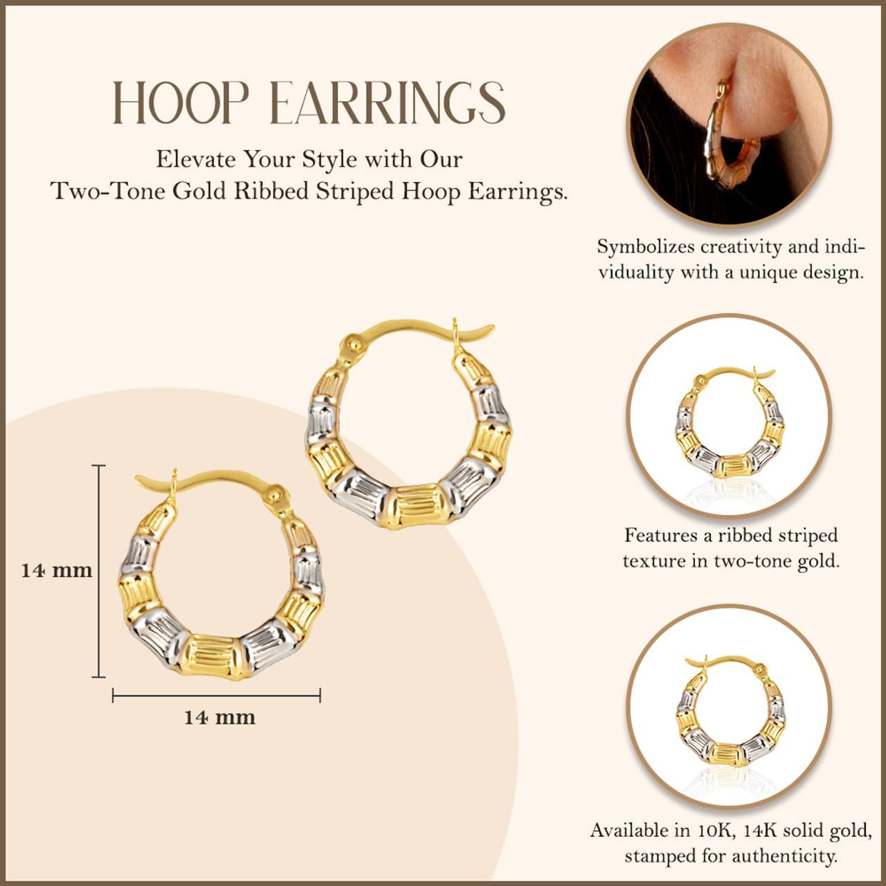 The Two-Tone Ribbed Striped Hoop Earrings offer a delightful fusion of style and sophistication, making them a standout accessory for any jewelry lover. Featuring a striking combination of two tones, these hoops are designed with a ribbed striped texture that adds depth and dimension. The rhythmic pattern of the stripes creates an eye-catching effect, ensuring these earrings catch the light beautifully with every movement. Their versatile design makes them suitable for various occasions, effortlessly complementing both casual and dressy ensembles. Symbolizing creativity and individuality, the Two-Tone Ribbed Striped Hoop Earrings make a thoughtful gift for those who appreciate unique accessories. These earrings are perfect for adding a stylish flair to your look, whether paired with a simple outfit or dressed up for a special event. Their lightweight construction ensures comfortable wear, allowing you to showcase your personal style without sacrificing comfort. Elevate your accessory game with these chic hoops, which blend modern design with timeless elegance, ensuring you stand out in any crowd.