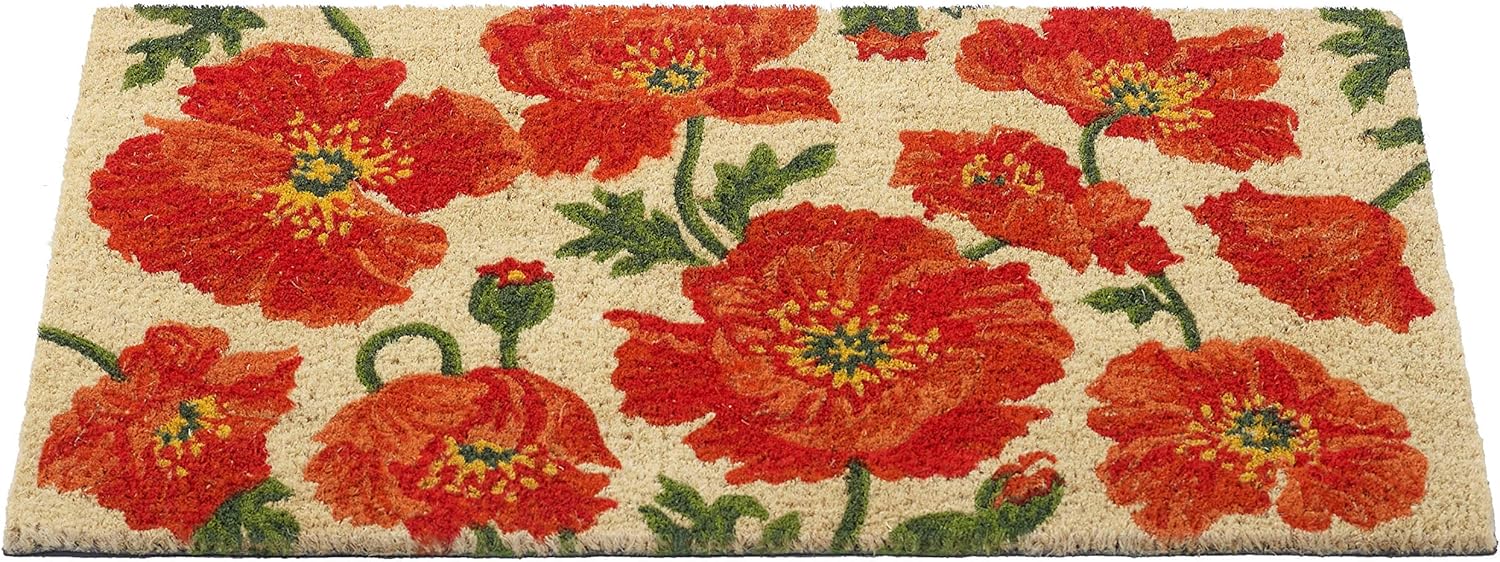 Elevate the everyday with Home Furnishings by Larry TraversoLarry Traverso's Red Poppies Doormat is a practical outdoor accent piece awash in warm, welcoming shades. Hand-stenciled blossoms bloom along an eco-friendly frame, crafted from 100% sustainably-sourced coir fiber. Coarse, chemical-free bristles excel at scrubbing shoes clean. A responsible alternative to synthetic rugs, Larry Traverso's decorative floor mats effortlessly enliven stoops, porches, patios, and entryways. The Home Furnishing by Larry Traverso Red Poppies Doormat measures 30-inches long by 18-inches wide. Shake or vacuum to clean; do not submerge or use atop wet surfaces. For best results, keep only in sheltered areas.Home Furnishings by Larry Traverso specializes in distinct home decor that epitomizes superb individuality. Larry Traverso believes that home decorating should be easy, enjoyable, and affordable. Indulge in stress-free style with Larry Traverso.