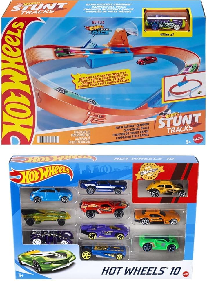 | Included Components | The Rapid Raceway Champion set includes a starting gate with countdown, launchers, two lengths of side-by-side straight track and a winners' flag plus one 1:64 scale Hot Wheels vehicle. |