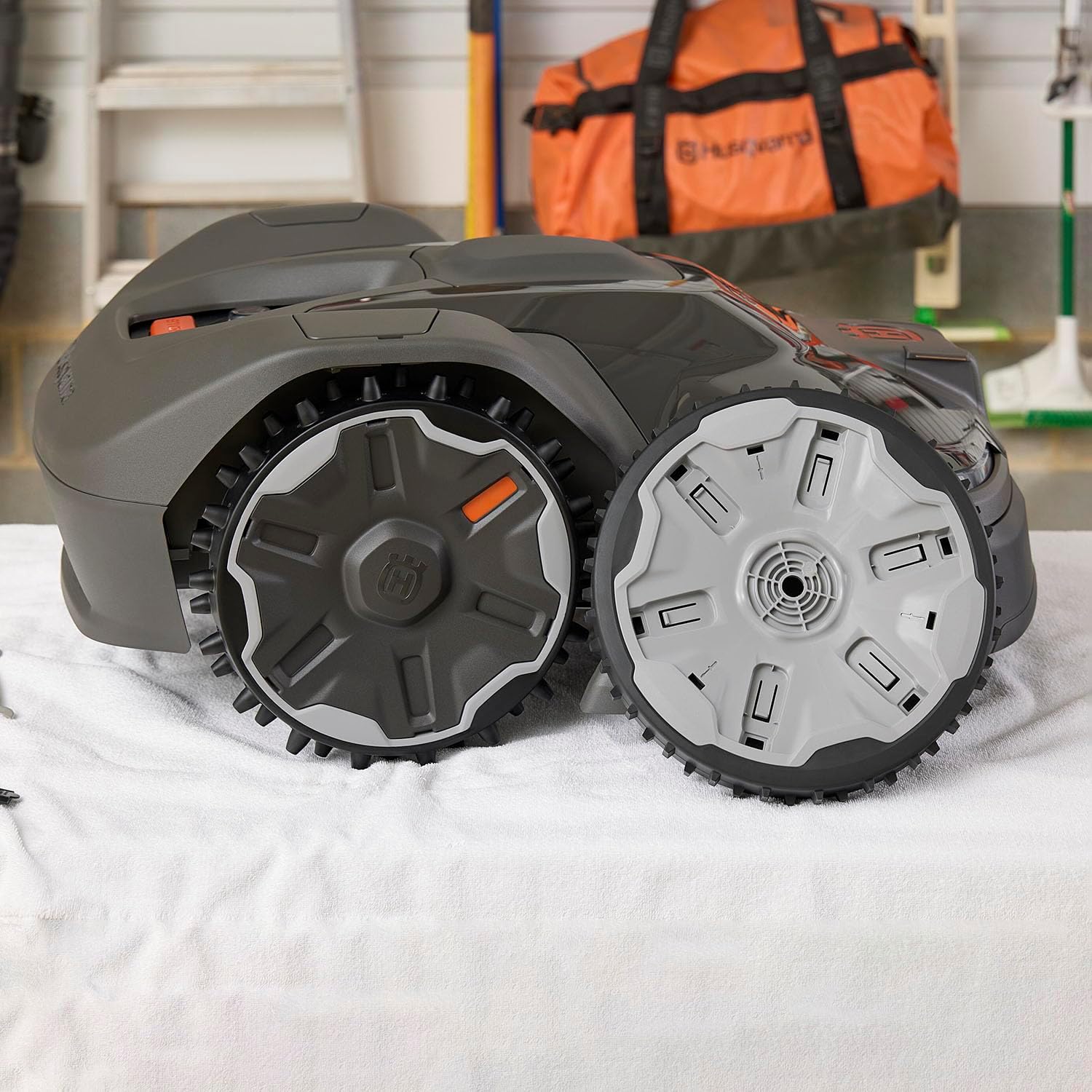The terrain kit improves traction when Husqvarna Automower is mowing wet, slippery grass or on steep slopes. It includes 2 heavy rear wheels and 6 brushes. Easy to install and available for most Automower models, the terrain kit is part of our wide range of high-quality Automower accessories.