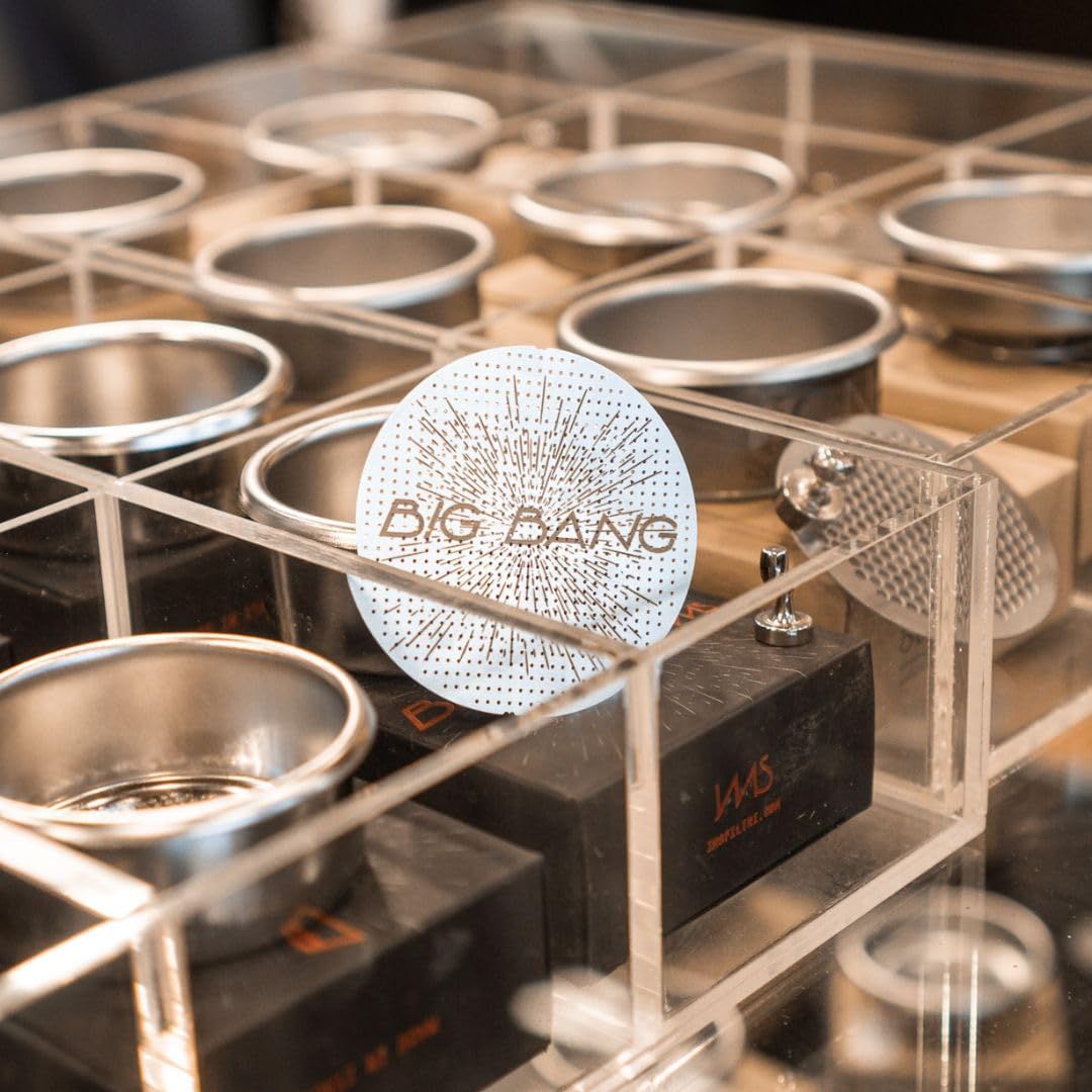 Upgrade your espresso making experience with the IMS Big Bang Puck Diffuser Screen, designed for 54mm filter baskets. Featuring an innovative hole pattern, this puck screen ensures optimal water distribution, with holes spaced further apart from the center to the edge, enhancing your coffee extractions for richer flavors and more consistent results. At just 0.5mm thin, this screen is lightweight and easy to clean, making it a practical, must-have addition to any coffee setup. It’s crafted to fit perfectly with IMS Big Bang filter baskets but is compatible with any standard 54mm basket, offering versatility for home baristas. Why You Need This Enhanced Espresso Extraction: Experience smoother, more even brewing with reduced channeling, resulting in consistently high-quality shots. Effortless Maintenance: Keep your shower head, gasket, and screen cleaner for longer, reducing your machine’s maintenance needs. Safe and Organized: The magnetic pin allows you to safely remove the hot puck screen without burning your fingers and doubles as a convenient storage tool, keeping your puck screen securely attached to any metal surface for a tidy coffee station. Easy to Clean: Just rinse and wipe with a non-abrasive cloth - no need for harsh chemicals. Italian Craftsmanship: Proudly made in Italy, ensuring premium quality and performance. Whether you’re an espresso perfectionist or a casual home barista, the IMS Big Bang Puck Diffuser Screen is your solution better coffee and a more organized coffee space. PLEASE NOTE: Stainless steel has different magnetism levels. Food Safe steel (SAE 304) products usually have lower magnetism levels. Thus, magnetic pin might work slightly different with other pucks or surfaces.