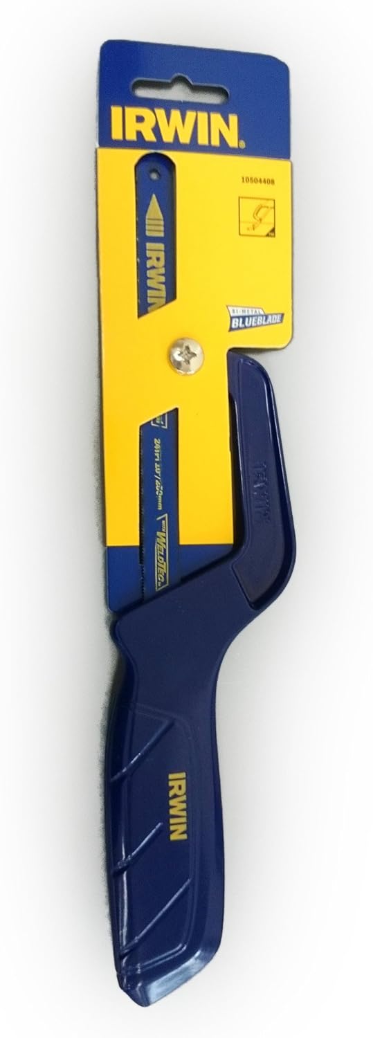 Irwin Mini Saw uses standard hacksaw blades in a specially designed holder allowing the saw to be used in confimed areas.