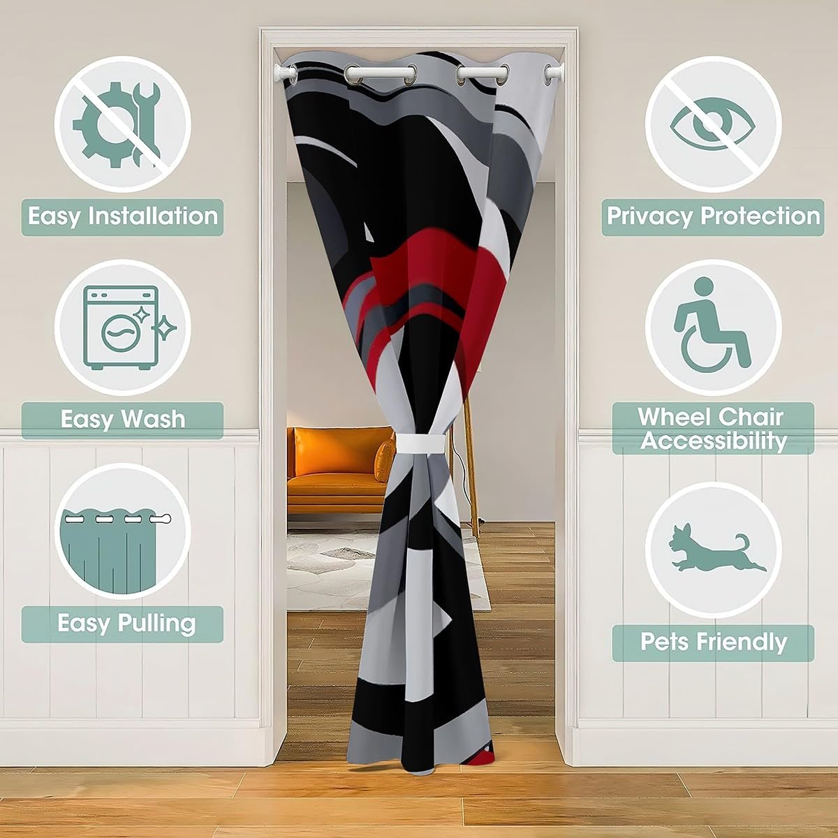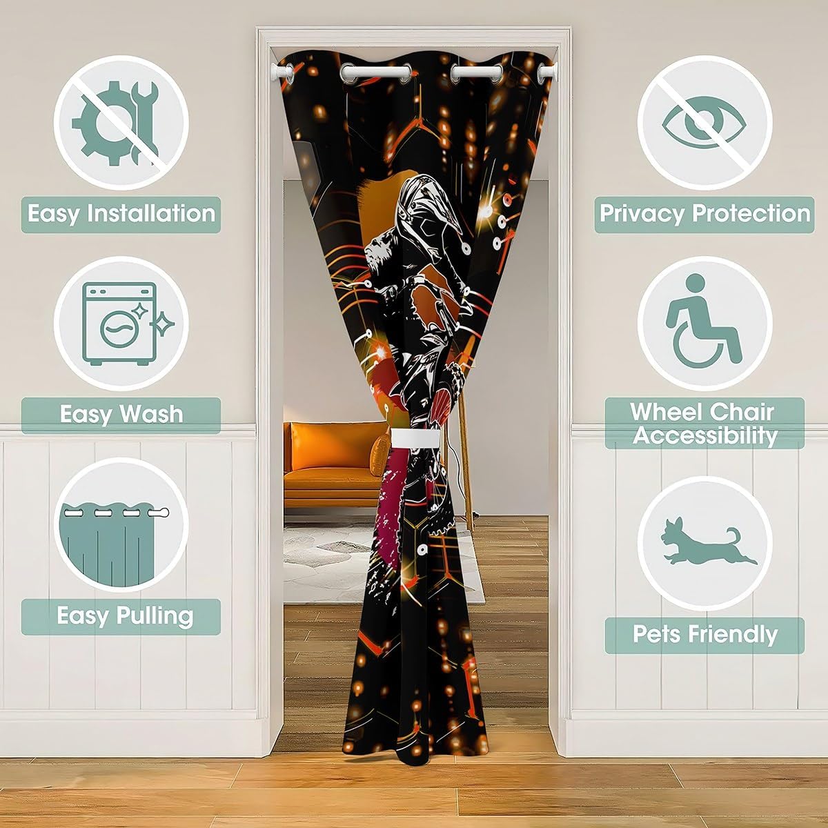 Package Include: doorway curtain privacy 80 inch 84 inch insulated thermal room darkening blackout curtains for bedroom 1 panel Made from 100% polyester microfiber Size information:34"x80"42"x80"52"x80"59"x80"42"x84"52"x84"this doorway curtain can be door divider curtains which hang between two home space are providing privacy in bedroom and living room, also blocking smell from kitchen, darkening the room or even used as a closet curtain to hide bathroom shelves;2as window curtain panels, this curtain is suitable for the living room,bedroom, kitchen, guest room, kid's room, vacation home, front doors, patio door, front porch, pergola, cabana, covered patio; with eye catching design, it makes a bold statement in every room and space it covers Occasion:the cute home furniture decoration trendy door curtain designed for children ,adult, men, women, teens; this window treatment sets is also suitable for all seasons