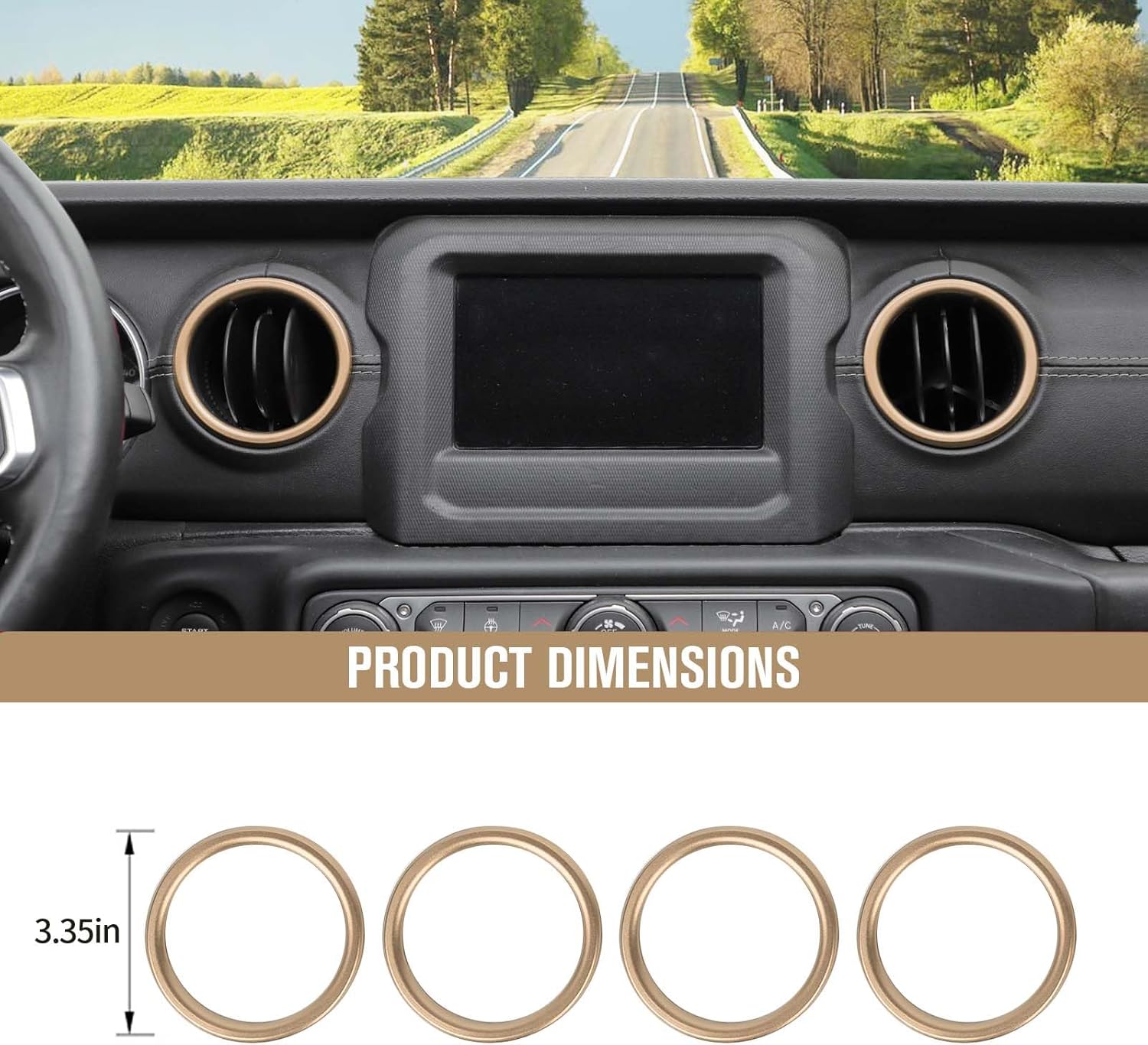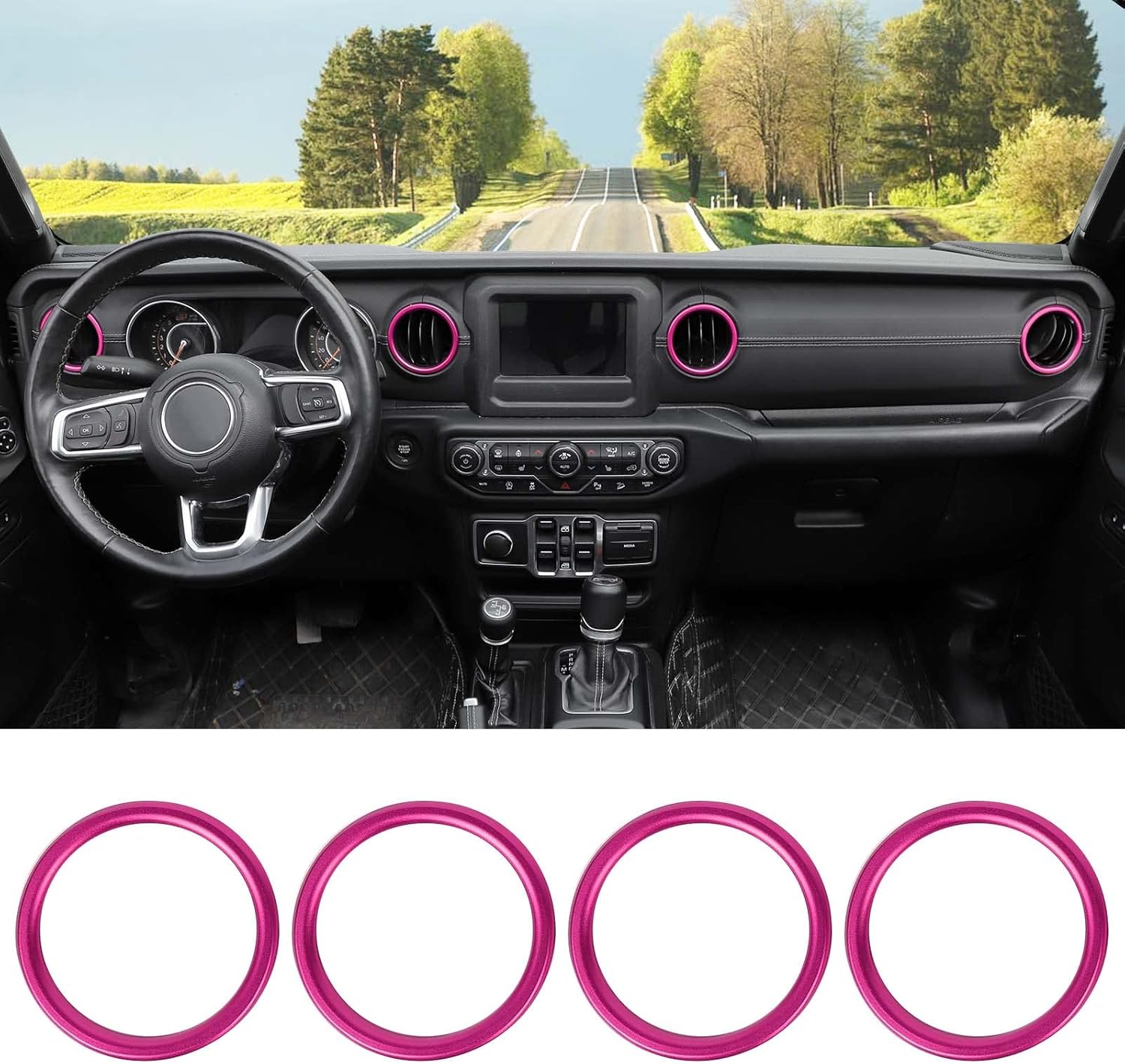 Jimen for JL AC Vent Ring, 4PCS Center Console Dashboard Air Conditioning Outlet Cover Interior Trim Kits Compatible with 2018-2023 Jeep Wrangler JL JLU & Gladiator JT, Aluminum Alloy