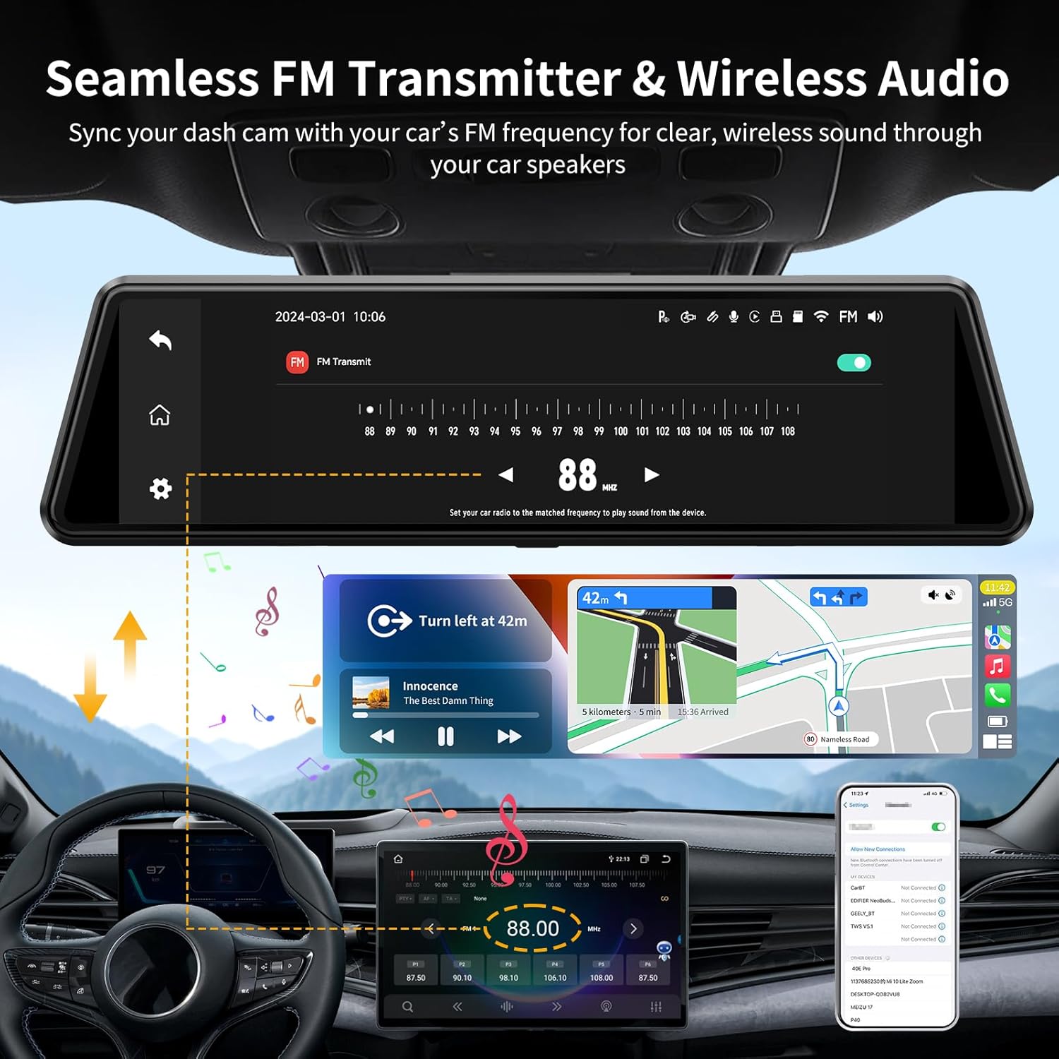 | Other Special Features of the Product | 2.5K + 1080P, 4-Way Audio[FM include], CarPlay & Andriod Auto, Navigation & Dvr together, Vioce Control |