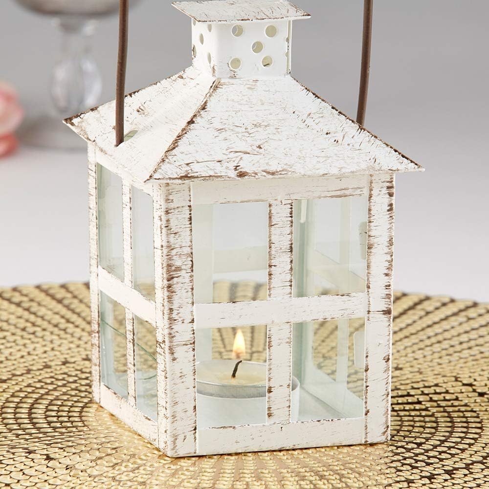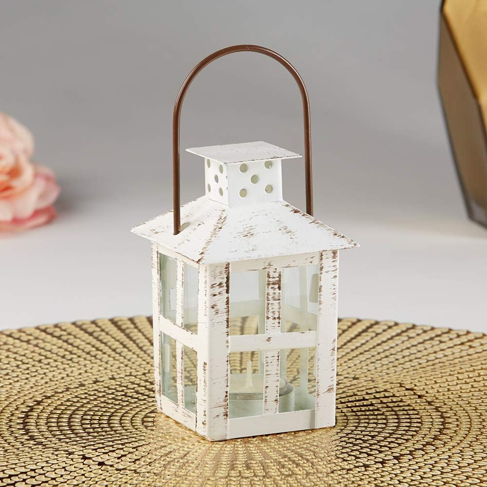 What a delightful wedding favor! Designed by Kate Aspen, our Vintage Lantern adds charm and interest to your vintage wedding table decor while serving as a functional piece that lights the way to guest tables and lends a romantic ambiance. Features and Facts:-- Materials: Metal-- Details: Charming metal lantern with distressed finish and removable lid for easy access to tea light.-- Measures: 3.1" w x 3.1" d x 4.9" h without handle, 3.1" w x 3.1" d x 6.7" h with handle