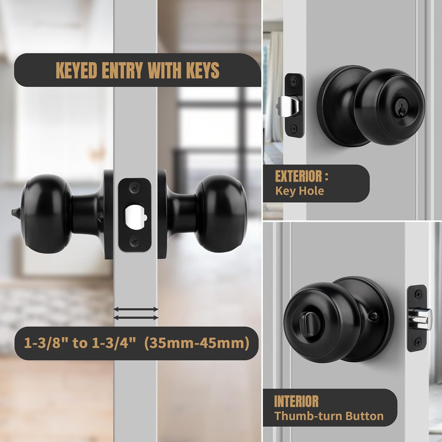 | Additional Features | Round Keyed Function Door Knob |