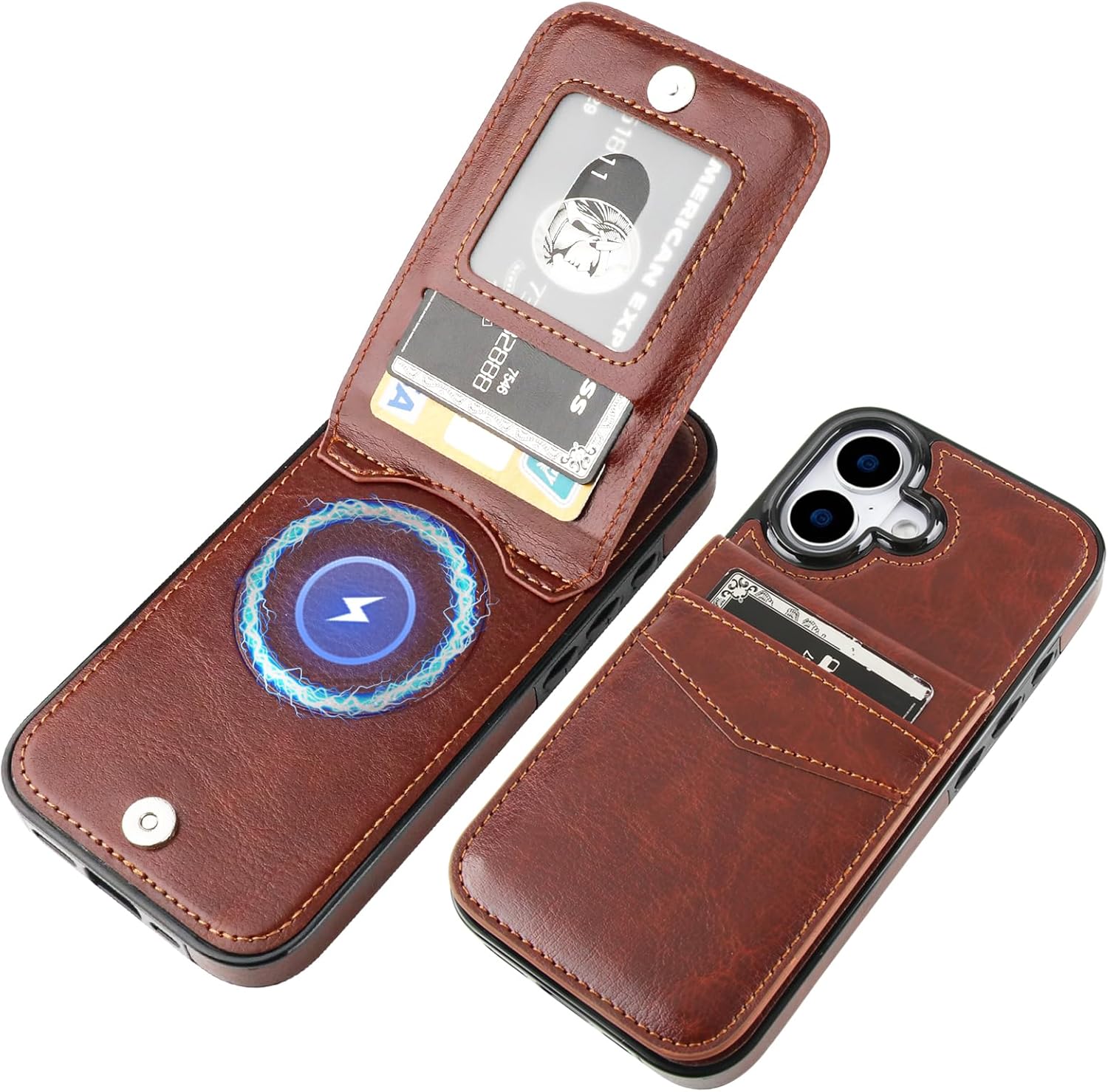 KIHUWEY for iPhone 17 Case Wallet Compatible with MagSafe Wireless Charging, Credit Card Holder, RFID Flip Leather Magnetic Clasp Kickstand Heavy Duty Protective Cover 6.3 Inch (Brown)
