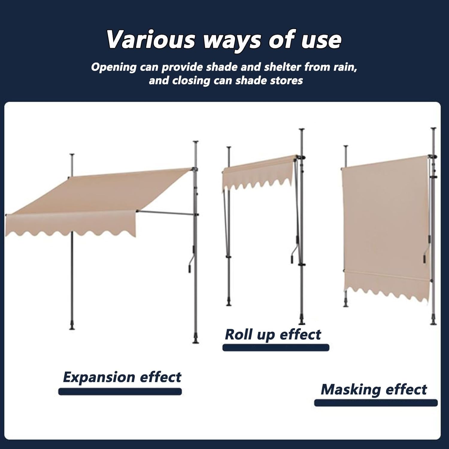 Build a mini shelter for resisting rain or scorching sun at the gate or window! You may feel it wonderful by using our Household Application Door & Window Rain Cover Eaves Canopy! bracket could strongly sustain this canopy. It bulges to shape a small shield. Quite easy to install and remove! It also acts a decoration for your house! Don't miss such a good chanceFeatures:● Refine workmanship by using premium materials● Guaranteed durability and quality, unused● Solid structure, good strength and easy operationSpecifications:● Brackets Material: steel● Canopy Material: High waterproof fabric● Canopy color: Dark gray , Beige , Wine red , Dark green , Gray and white stripes● Bracket color: Black, White● Size: 2x1.2m , 2.5x1.2m , 3x1.2m , 3.5x1.2m , 4x1.2m● Does it need to be installed: required● Scope of application: balcony, terracePacking list:1 x Eaves CanopyNote:① Please kindly note that the product color may slightly vary due to photographic lighting sources or your monitor settings.② Please confirm whether the size you measured is correct before purchase.
