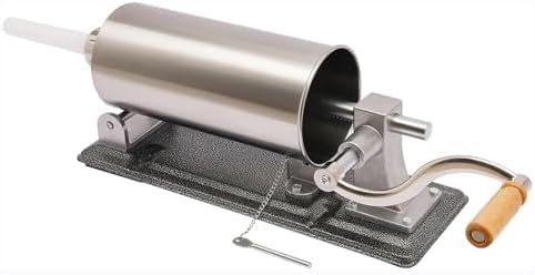 This versatile sausage stuffer is designed for efficient and easy meat processing. It features a durable construction with materials including stainless steel, plastic, wood, polyethylene, and iron, ensuring long-lasting performance. With a capacity of 4L (1.06 gallons), it handles substantial batches, and its gross weight is 4.6 kg (10.15 lbs) for stability during use. The package dimensions are 47.5 x 20 x 15.5 cm (18.7 x 7.87 x 6.1 inches), and the product itself measures 28.3 x 18 cm (11.14 x 7.08 inches) in length and height, with a body diameter of 12.5 cm (5 inches). It offers multiple tube options for customization: stainless steel tubes in diameters of 1.6 cm (0.63 in), 1.9 cm (0.75 in), 2.2 cm (0.86 in), and 2.8 cm (1.1 in), all with a base diameter of 4.2 cm (1.65 inches), and plastic tubes in diameters of 1.5 cm (0.6 in), 2.2 cm (0.86 in), 2.5 cm (0.98 in), and 2.9 cm (1.14 in), also with a base diameter of 4.2 cm (1.65 inches). The clamping range is adjustable from 1.5 to 6 cm (0.59 to 2.36 inches) for secure handling. The package includes 1 sausage stuffer, 4 stainless steel tubes, 4 plastic tubes, 2 retaining clamps, 1 hand crank, and 1 gear shaft, providing everything needed for seamless operation. Ideal for home kitchens or small-scale production, this tool simplifies sausage making with its user-friendly design and robust components.