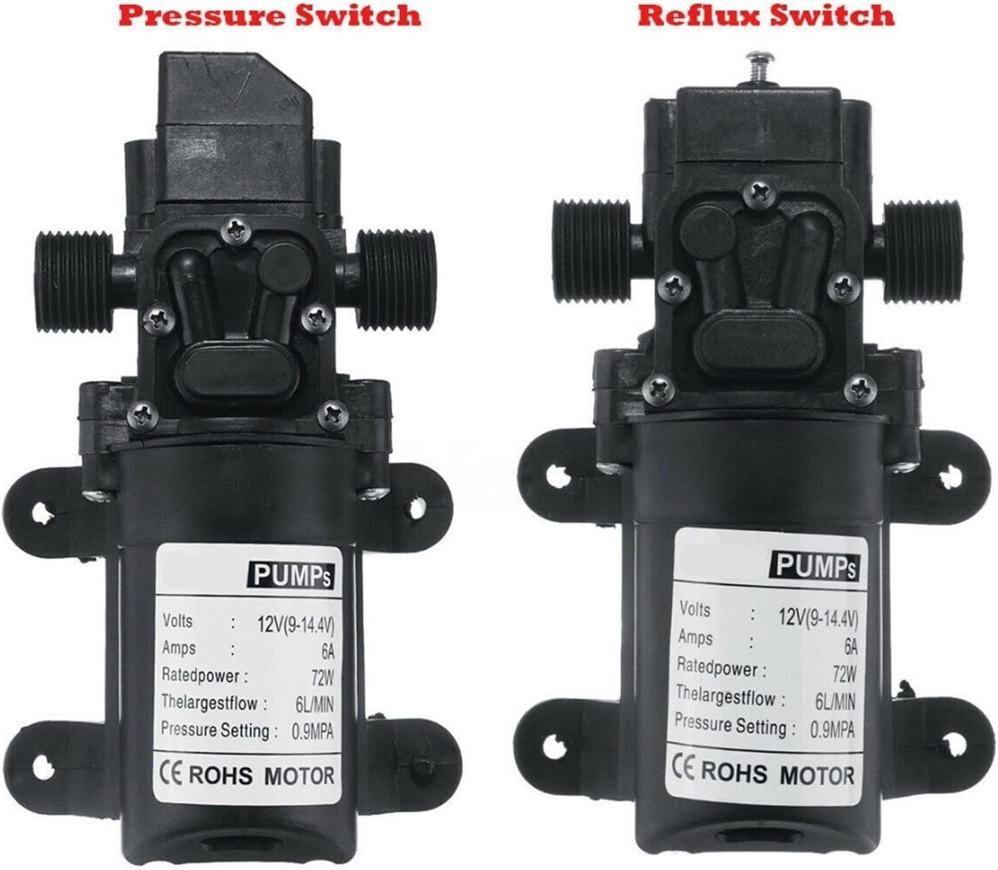 1. Tool-free disassembly and cleaning: Flexible structural design, easy to disassemble and clean without any tools.2. Easy to carry and use: This pump is small in size and equipped with a handle, which is very convenient to carry, so it can be used in small spaces. Suitable for swimming pools, ponds, gardens, basements, aquariums, irrigation and other places.Specification:Type: Pressure Switch / Reflux Switch (optional)Size: approx 165*100*62mmInlet and Outlet Size: approx. 20mmVoltage: 12V DC (PS: 220V AC (Need a Transformer to work)Amps: 6ARated Power: 72WPressure: 7kgFlow Capacity: 6L/MIN(6.0 Liters per minute)Medium Temperature: 0 -100Working Medium: no oil, non-acid and alkali, without solid particles of liquidFeature:Using a variety of imported materials, self-priming, thermal protection, smooth operation, long-time continuous idling, long-time continuous load operation.Diaphragm pump combines the advantages of self-priming pump and chemical pump. When the water pressure is too high, pump will protect themselves and normal work, water pipes will not burst.When the water turned off, it will automatically cut off power,the motor is stopped. After the water turned on, will automatically power on, motor running.Low power consumption, energy-efficient.Low noise.Fine workmanship and stable performance.Easy to use.Long service life.Package included:1 x Diaphragm Water Pump