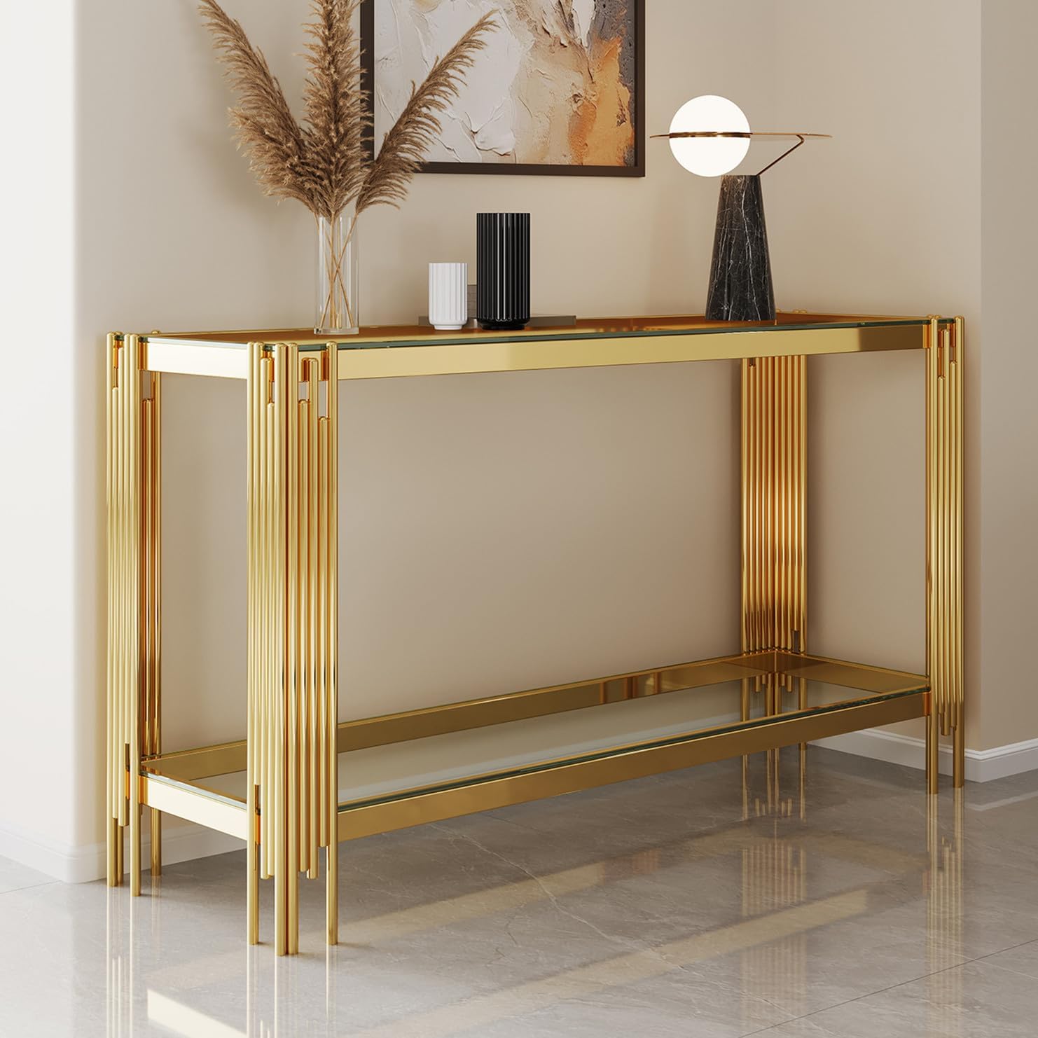 Take your living room decor to the next level with this stylish and functional coffee table. The unique geometric frame base is crafted from stainless steel with a gleaming gold or silver color finish that's sure to grab glances. This coffee table comes with a wide tempered glass table top for a vase of fresh flowers or a set of coasters. Product Dimensions: 47.24 x 25.59 x 17.72"H Product Weight (lbs.): 77.29 Color: Clear/Black Glass & Silver/Gold Top Material: Tempered Glass Frame Leg Material: Stainless Steel Package Size&Weight: Package A: 50 * 26.58 * 4.33 in. 26.9 lbs. Package B: 50.79 * 27.17 * 4.33 in. 74.91 lbs. Item Include 1 x Coffee Table