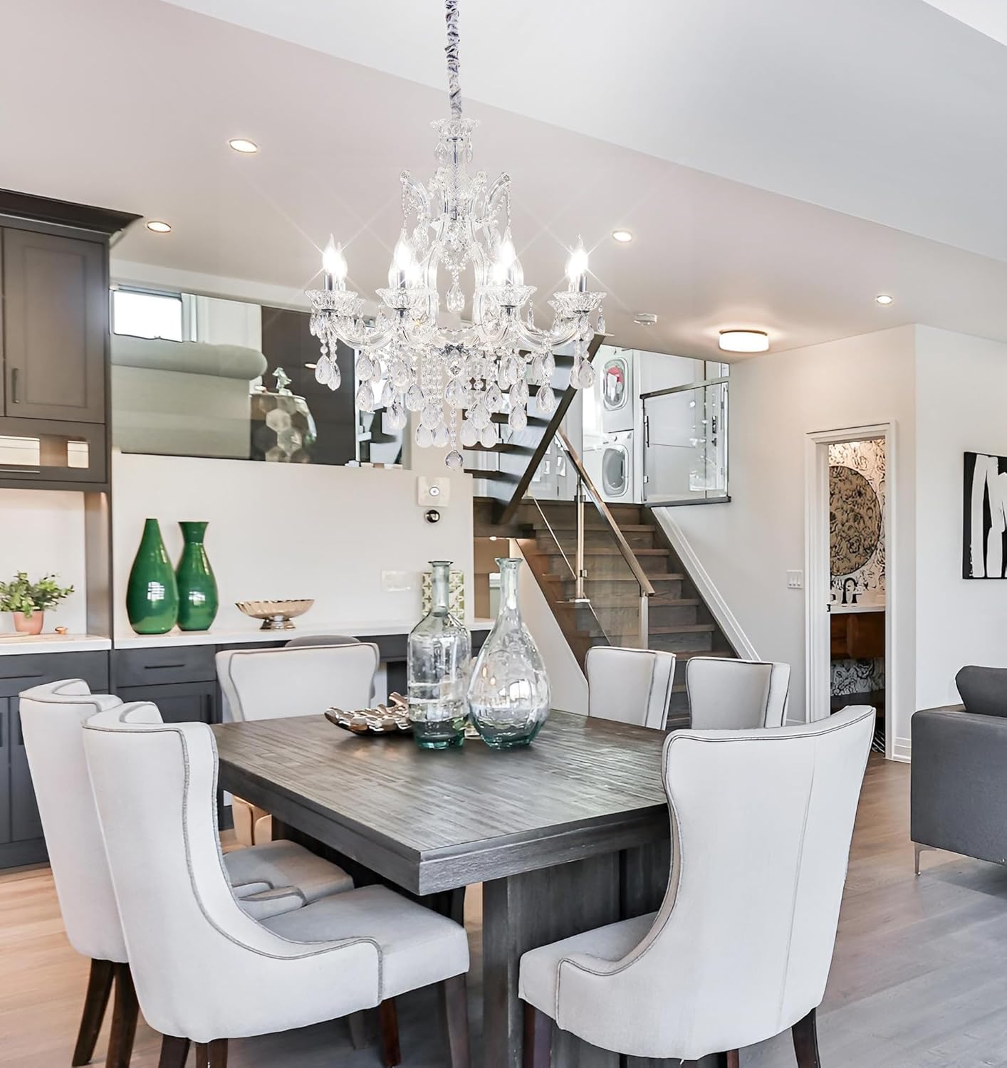 Modern Clear Crystal Chandelier 8-Light,K9 Crystal Chandeliers Lighting Candle Pendant Light Fixtures for Dinning Room, Foyer Kitchen Island, Living Room (8 Lights)