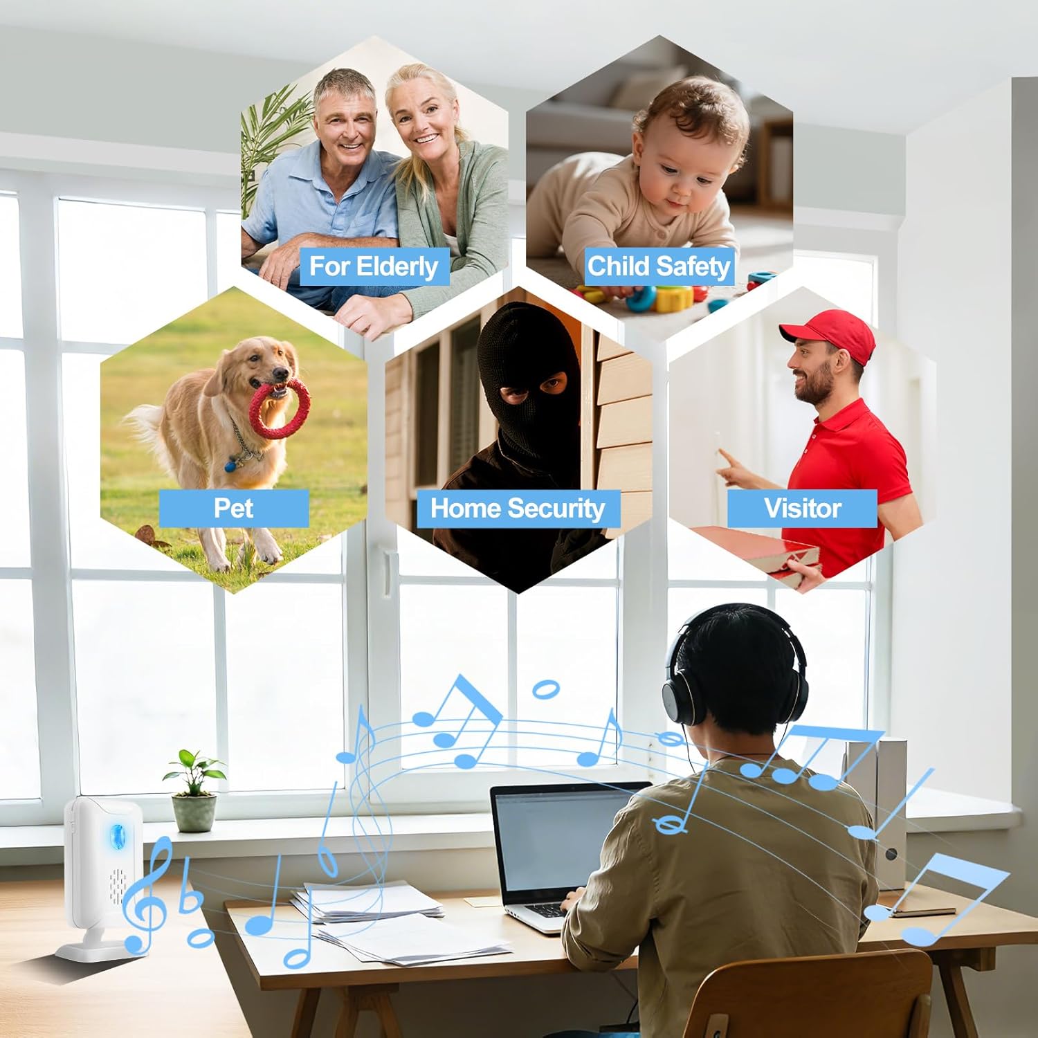 KCMYTONER Motion Sensor Door Chime Battery Operated, Motion Sensor Alarm for Business,Doorway Motion Bell,Volume Adjustable,918Ft Range,5 Modes, 36 Tunes, for Home, Store, Office+ KCMYTONER Bike Alarms for Ebikes, 113db Loud Ebike Alarm Anti Theft with Remote, Motion Sensor Scooter Alarm,Waterproof, Sensitivity Adjustable & SOS, for Motorcycle Bicycle Tricycle Mobility