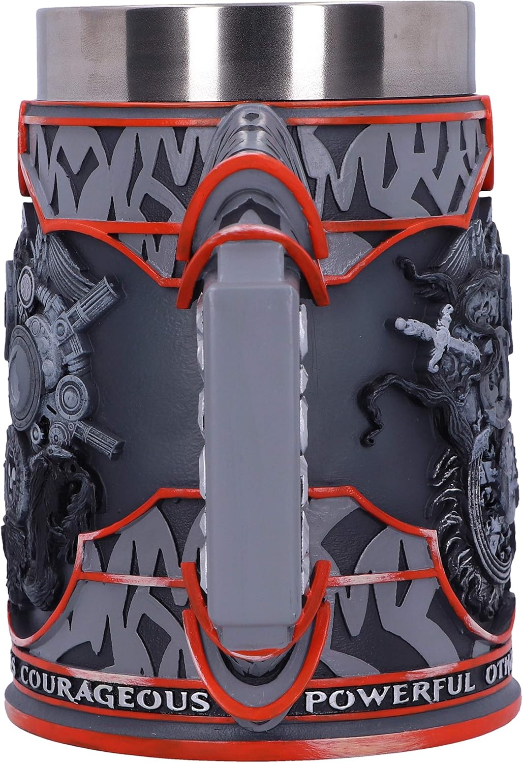 Commemorate the first modern trading card game with Nemesis Now's Magic: The Gathering Tankard. Emblazoned on the top of the Tankard is the bright orange Planeswalker spark. The focal point of this Tankard is the highly detailed "Colour Wheel" at its centre. There are five colour identities: white, blue, black, red and green, each representing both a way of thinking about the world and a collection of related magical powers. Towards the base of the Tankard are the words; Adventurous, Heroic, Boundless, Courageous, Powerful and Otherworldly, terms that describe most Planeswalkers. Engraved on the handle is the Magic logo text. Cast in the finest resin, this MTG Tankard will make a fine addition to any Planeswalkers collection.