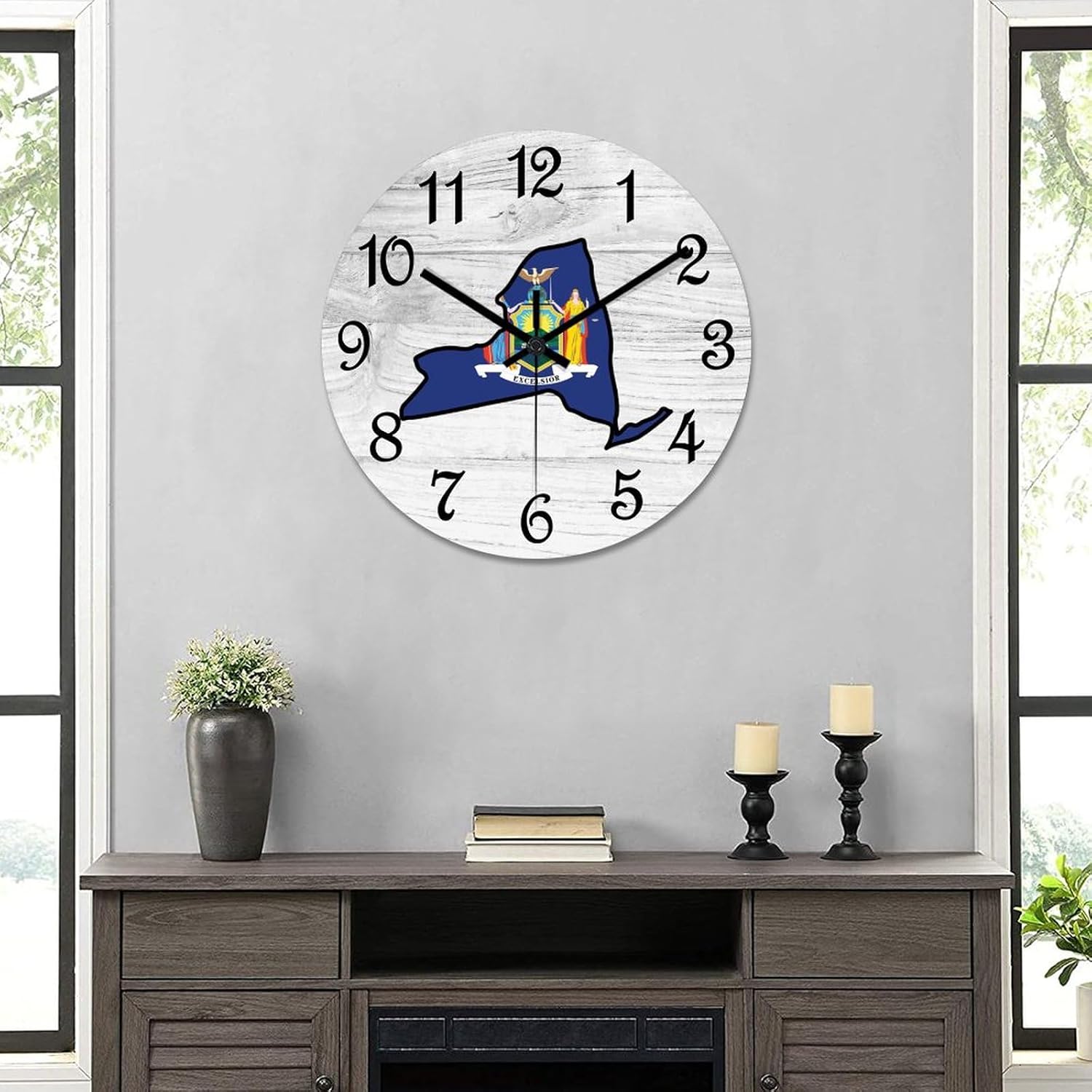 Package: 1 x PVC clock Size & Material: 10 Inch/12 Inch/15 Inch,The pvc wall clock is made of high quality natural PVC, eco-friendly, durable, and vivid color, which keeps the time accurate all day. No frame nor glass cover.Feature: 1.Easy to read even from a long distance. 2. Non-ticking, provide you with silent atmosphere all day and night. At the same time, accurate time always. Notice: Power,battery operated ( battery is not included)Due to different measurement methods, this size data may have an error within 1-2cm.Color difference is allowed due to light and screen effects.Guarantee:If there is any problem with the clock you received, please feel free to email us, we will reissue you or tell you theremedy.Any question,please feel free to tell us.