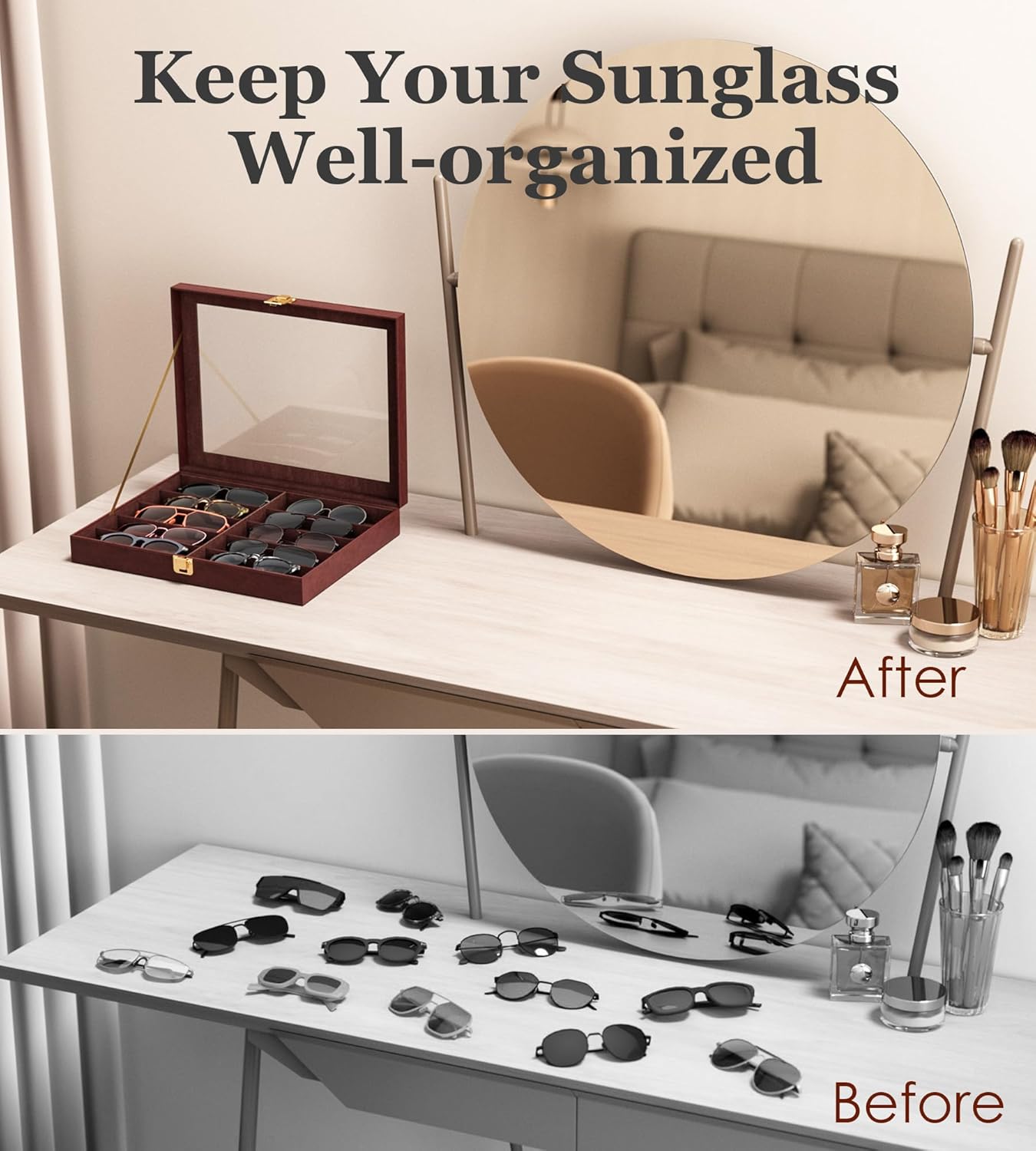 NEWLOOP 10 Slots Sunglasses Organizer for Multiple Pairs of Sunglass Display Case Storage Box for Women and Men Compact Version