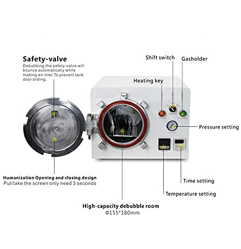 Description 1. Could as air compressor working for other machine 2. No noise,no need oil,door easy to control 3. No bubble completely. 4. pressure safety value. Parameter Power supply: AC 220V Power:800W Debubble tank size: 155*180mm Device size: 400*400*300mm Machine weight: 28.4kg Package weight:37.8kg Attention: we will send the product to you as soon as possible If you have any questions , please feel free to contact us