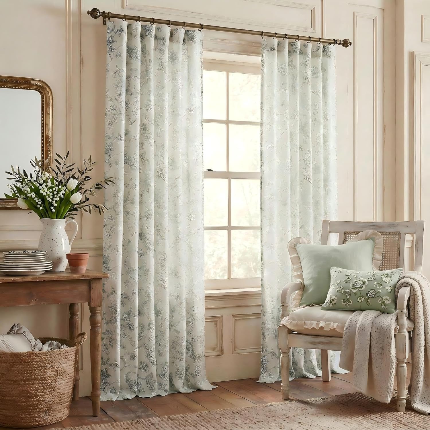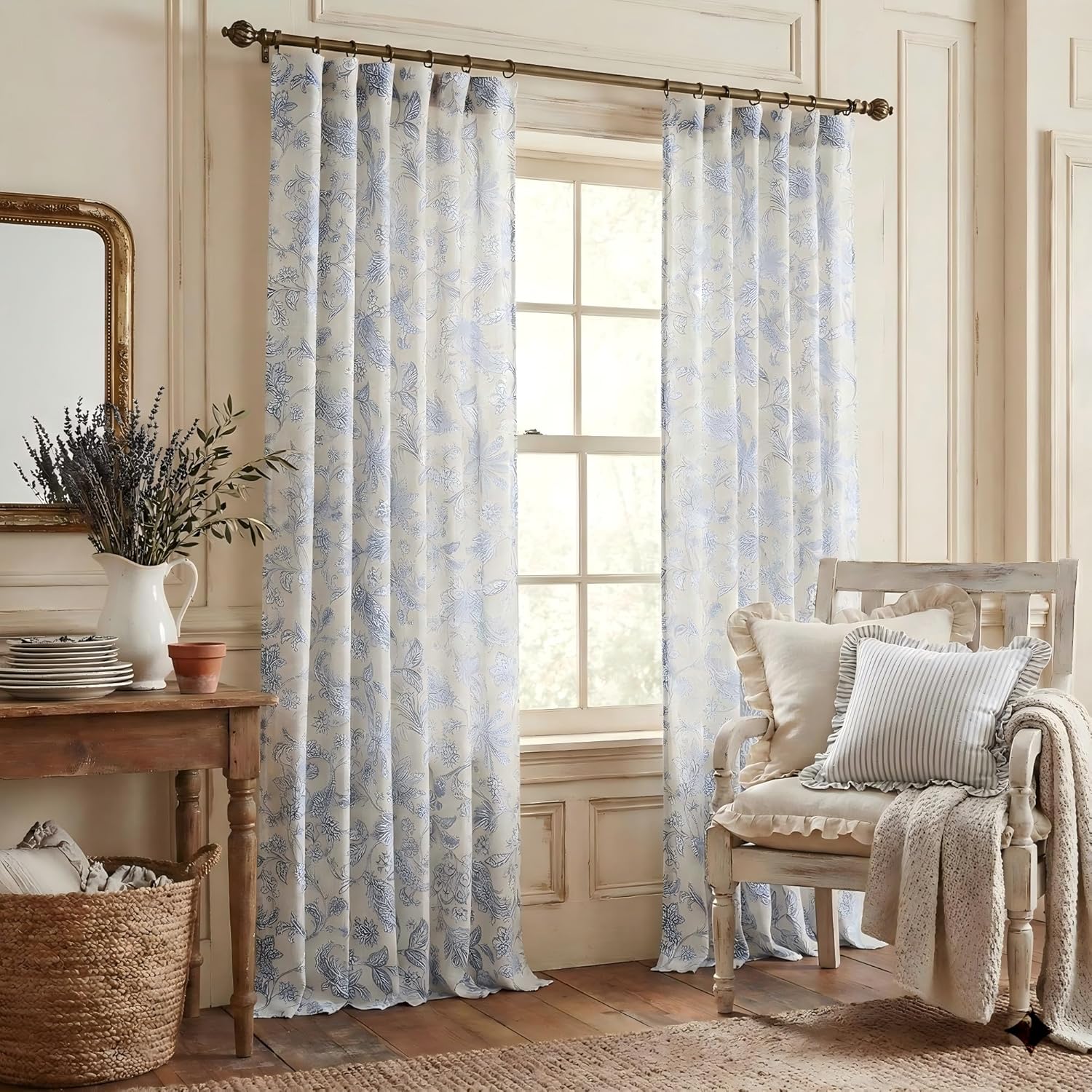 NICETOWN Vintage Blue Floral Curtains – Relaxing Botanical Drapes with Artistic Indigo TonesDesign Story | Timeless Elegance, Modern ComfortDrawing subtle inspiration from the serene harmony of classic blue-and-white artistry, these curtains blend nostalgic charm with contemporary simplicity. The bold indigo botanical motifs feature abstract floral shapes softened by hand-drawn textures, creating a versatile balance between vintage character and clean-lined modernity. Each petal’s gradient echoes the time-honored pigment traditions of blue-and-white porcelain, distilled over millennia. The composition balances the Zen-like stillness of oriental ink wash paintings with the dimensional richness of American botanical arts, creating a cross-cultural drapes that dignifies both minimalist tea rooms and ornate drawing rooms.Thoughtful Fabric | 88% Polyester + 12% Linen Blend◆ Softly Structured – A linen-inspired weave offers relaxed texture with enhanced durability, resisting everyday wrinkles while maintaining airflow.◆ Gentle Light Control – Semi-sheer material softly diffuses sunlight, providing daytime privacy without darkening rooms (ideal for home offices or reading nooks).◆ Easy-Care Practicality – Machine-washable fabric retains shape and color integrity through repeated use.Functional Details | Designed for Everyday Joy✓ Subtle Mood Enhancer – The balanced indigo-and-white palette promotes a restful ambiance, helping spaces feel both grounded and uplifting.✓ Adaptable Style – Classic rod pocket & back tab design accommodates most curtain rods; pair with tiebacks for adjustable light control.Why NICETOWN?✅ Artful Precision – Colors curated from timeless design archives, ethically crafted for modern living.✅ Safe & Sustainable – OEKO-TEX certified dyes, free from harmful chemicals.
