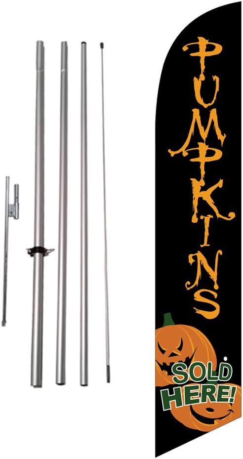 When you purchase this item, you will get 1 flag as shown in the main image, 1 4pc pole kit (top piece will be either pre-curved or a flexible tip), and 1 ground spike. This is everything you will need to use this feather flag kit in a grass or dirt area. ---- These Halloween flags are great for outdoor decor for both businesses and homes. Light weight and easy to assemble. Simply hammer or twist the ground spike into the ground and put the assembled flag pole kit into it. Pairs well with existing outdoor decor on your lawn or business lot.