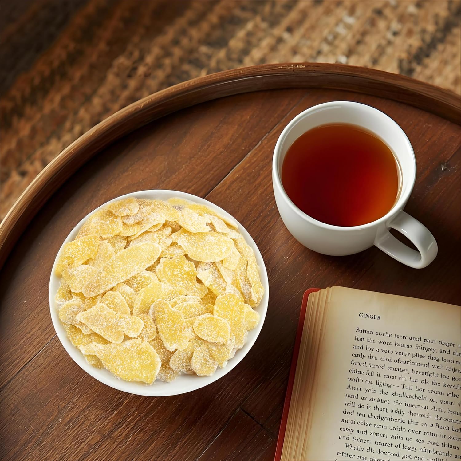 Treat your taste buds to the bold and natural flavor of our Organic Crystallized Ginger Slices. These tender, golden slices are made from premium organic ginger root, slowly cooked in organic cane sugar to preserve their natural heat while adding a delightful sweetness. Each bite offers the perfect balance of sweet and spicy โ a warm zing from the ginger followed by a smooth, sugary finish. Ideal for snacking, baking, or soothing the stomach, these chewy slices are as functional as they are flavorful.