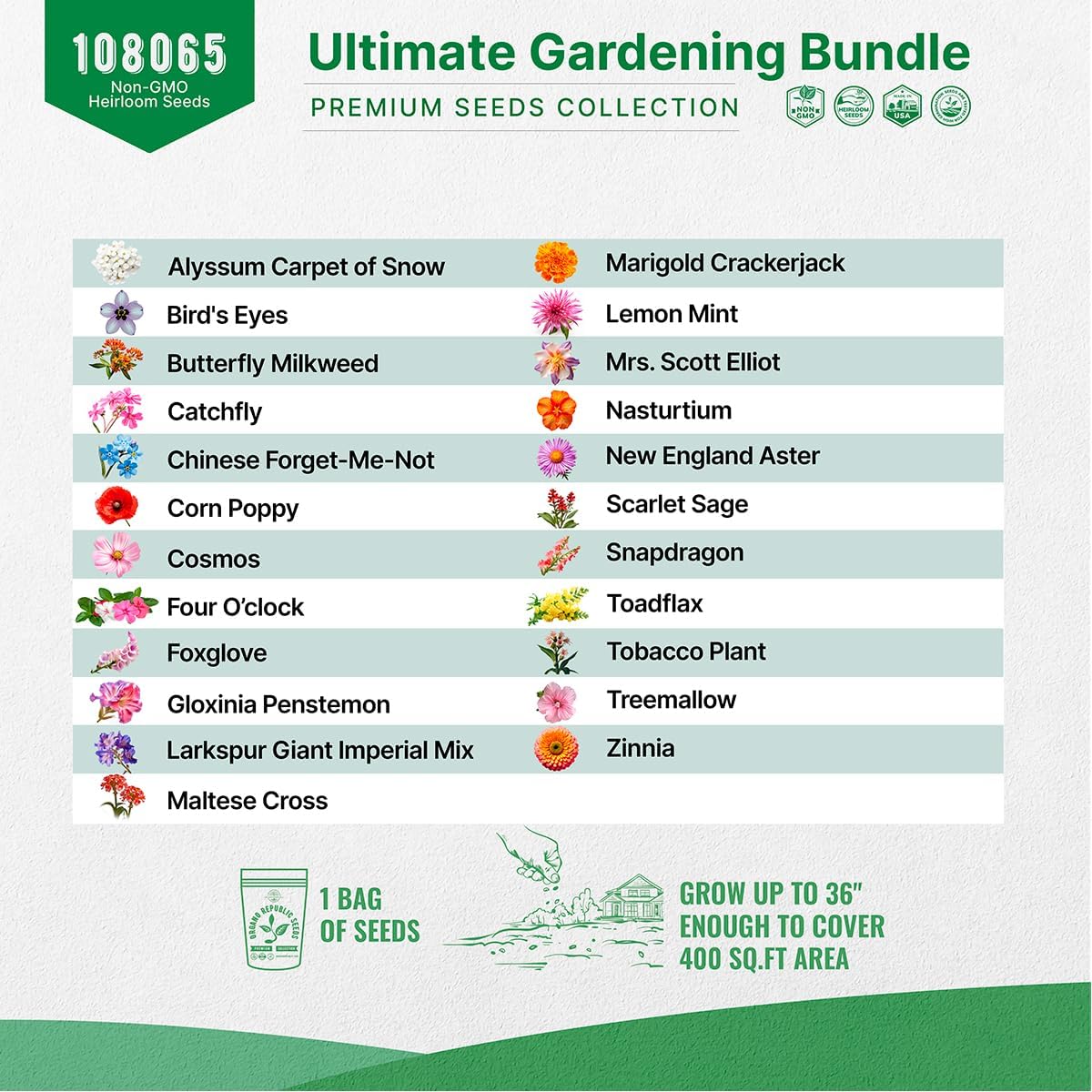 | Style Name | 23 Wildflower and 25 Edible Flower Seeds Variety |