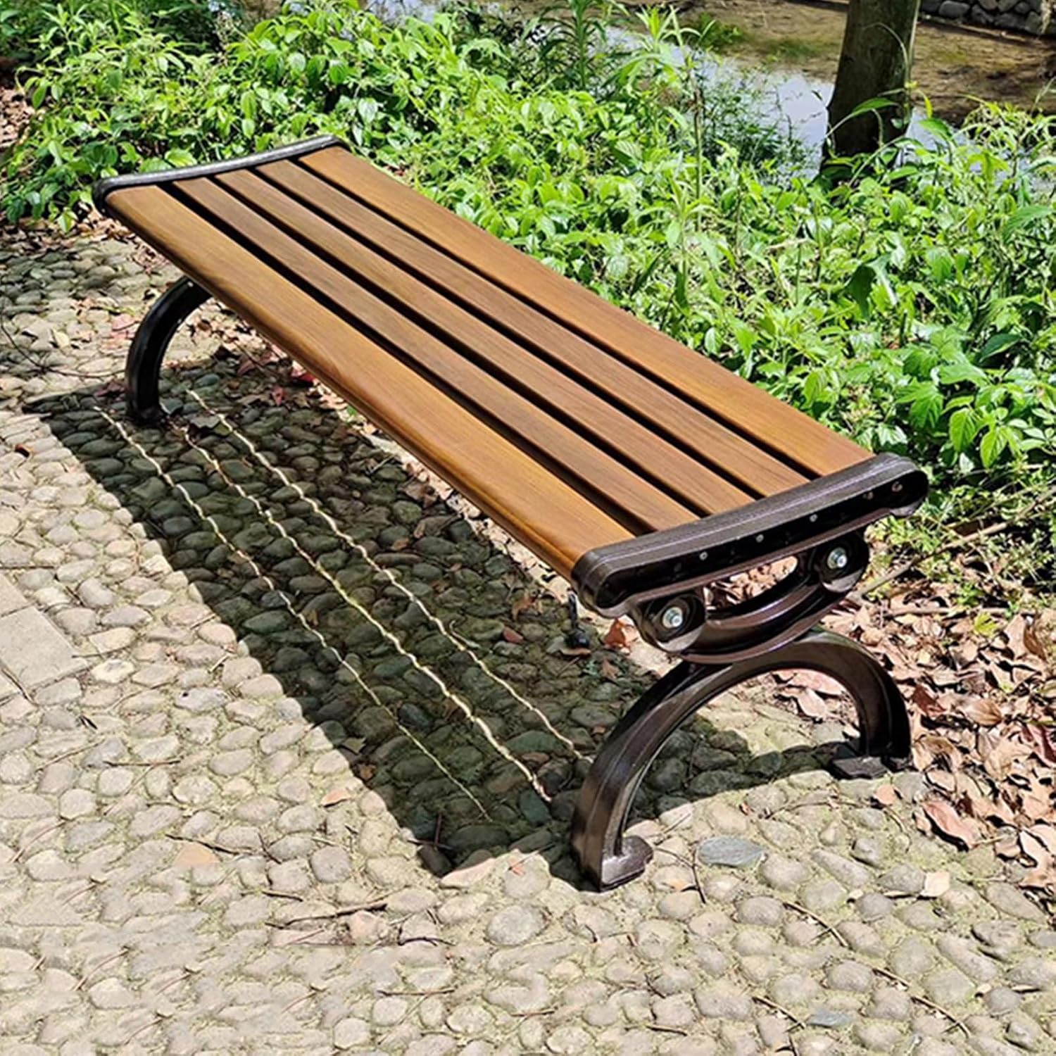Park Bench:Introducing our stylish Zinc Alloy Backless Bench, a perfect addition to any outdoor space. Available in a rich Walnut color, this bench seamlessly blends functionality with modern aesthetics. Crafted with a zinc alloy seat and a sturdy cast aluminum frame, it offers durability and stability for years of use. Designed for versatility, this bench is ideal for various settings, including parks, playgrounds, streets, squares, residential areas, and community spaces. Its weatherproof and rustproof features ensure it withstands the elements, maintaining its appearance without fading over time. Cleaning is a breeze, making it a hassle-free choice for busy environments. With dimensions available in both 120*43*41cm and 150*43*41cm, you can select the size that best fits your space needs. Assembly is required, and all necessary components, including expansion screws for secure fixing, are included in the package. Please note that due to transportation requirements, the legs and slats are delivered in two separate packages. Enhance your outdoor experience with our Zinc Alloy Backless Bench, where style meets practicality, and create inviting spaces for relaxation and social interaction. Its maintenance-free design allows you to focus on enjoying your surroundings, making it a valuable addition to any community or home setting.