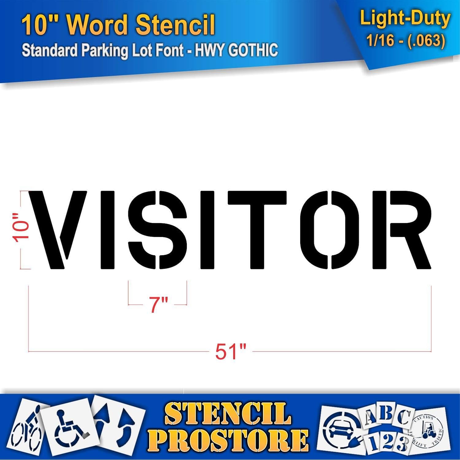 Pavement Marking Stencils - 10 inch VISITOR Stencil in 1/16'' Light-Duty (63 mil) thickness