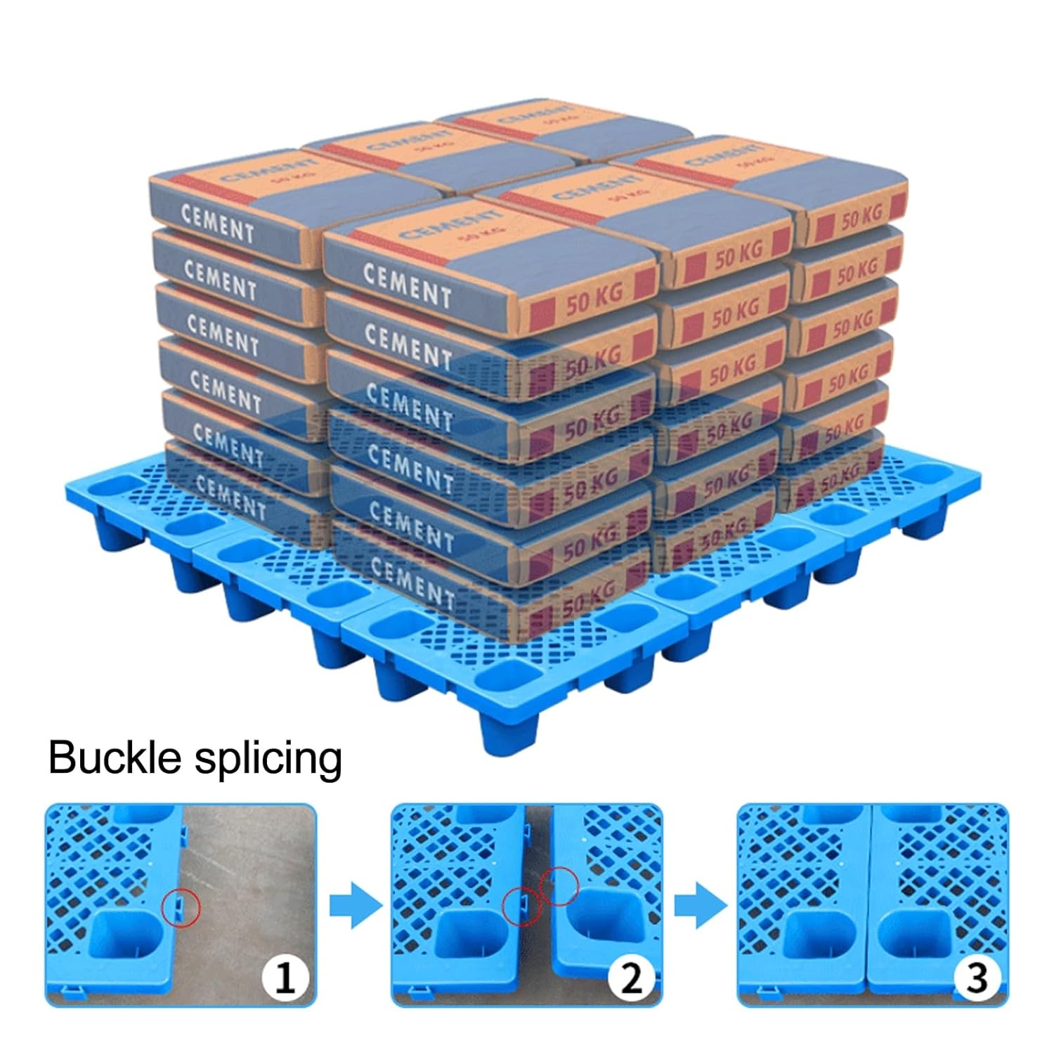 CLLXDZ Plastic pallets for basement storageMaterial: HDPEColor: BlueSize(L x W x H)50x30x12cm/20x12x5in , 50x42x12cm/20x16.5x5in , 60x40x12cm/24x16x5inLoad-bearing:500kg/1102 lbs